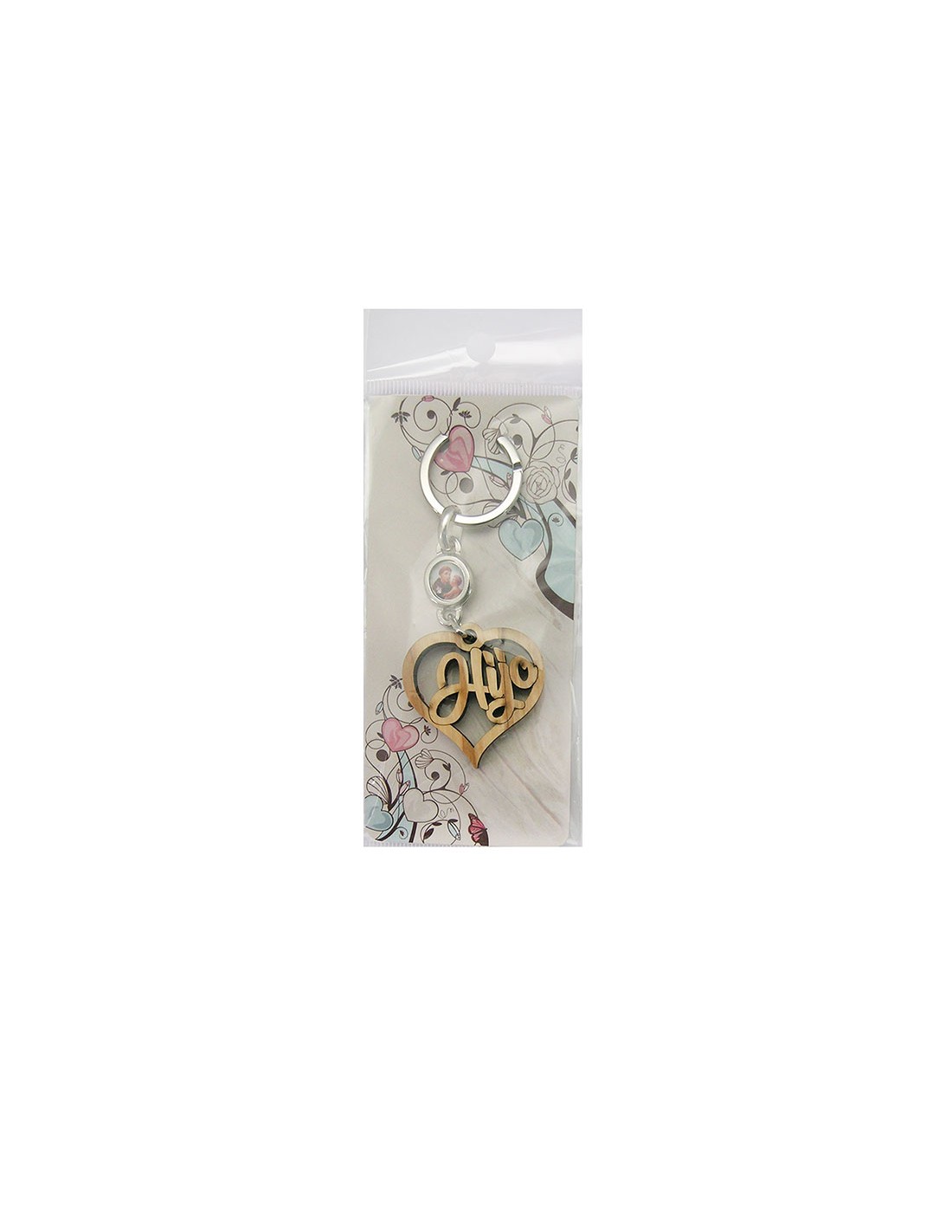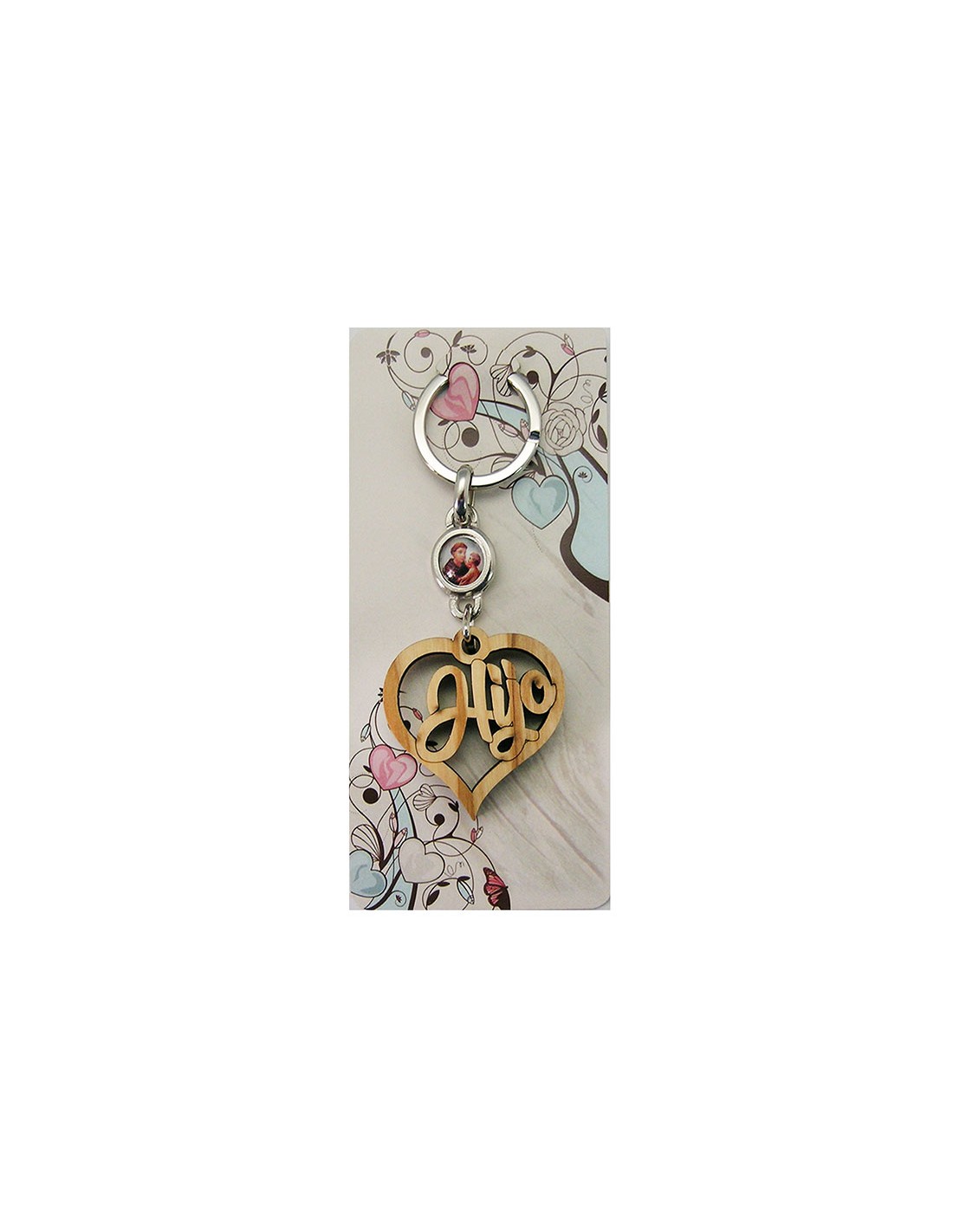 Llavero Madera Olivo Forma Corazon Hijo Con Foto Para Personalizar En Blister