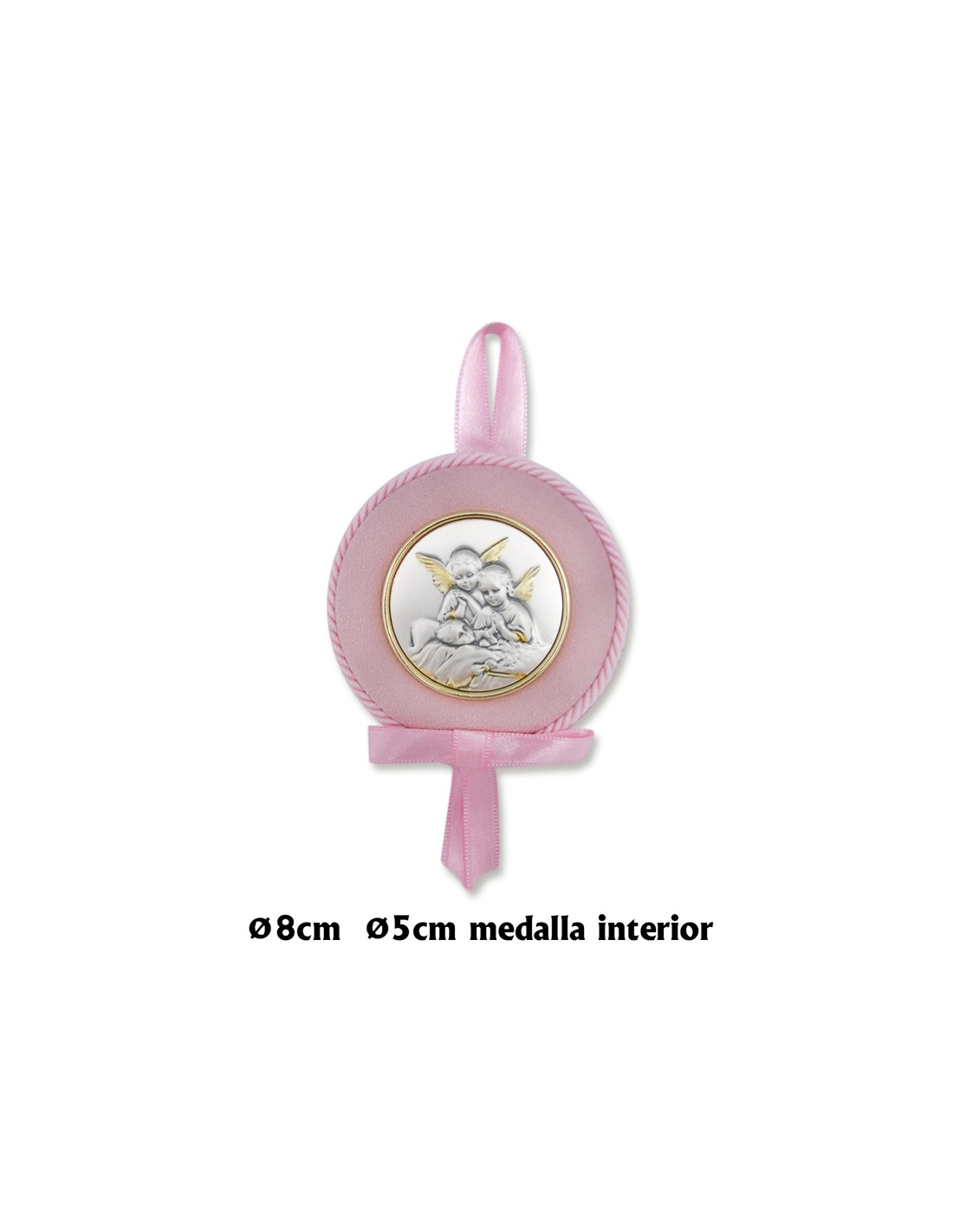 Medalla Cuna Placa Aluminio Niño Dos Angeles Tejido Rosa Con Cordon Rosa 8Cm