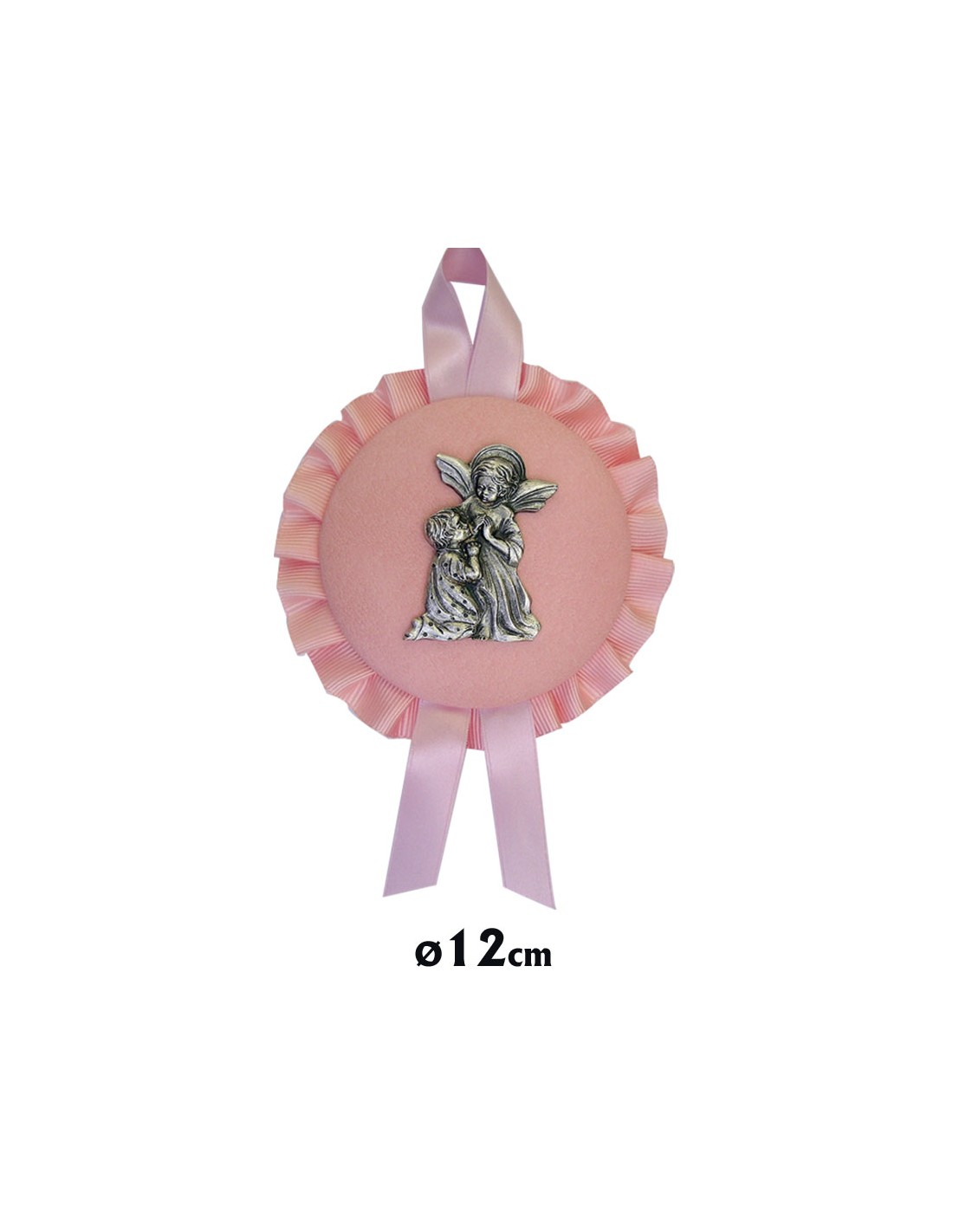 Medalla Cuna Con Placa Metal Niña Rezando Con El Angel Piel Rosa 12Cm