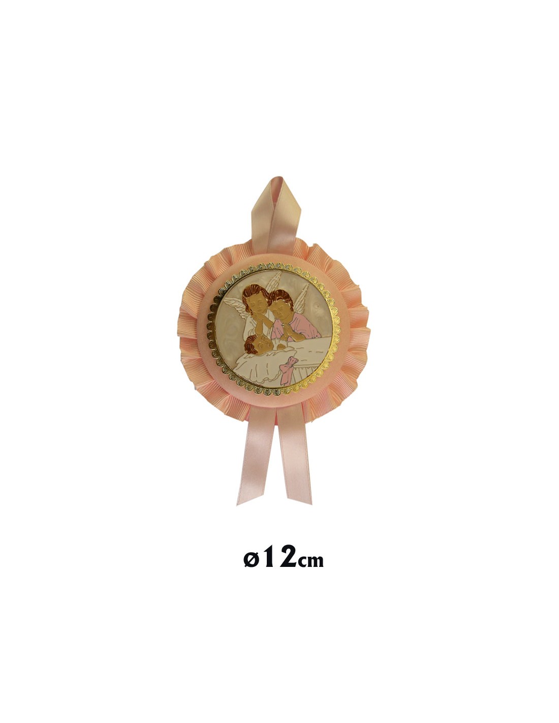 Medalla Cuna Dos Angeles Con Niña Dormida Con Placa Esmaltada Piel Rosa 12Cm