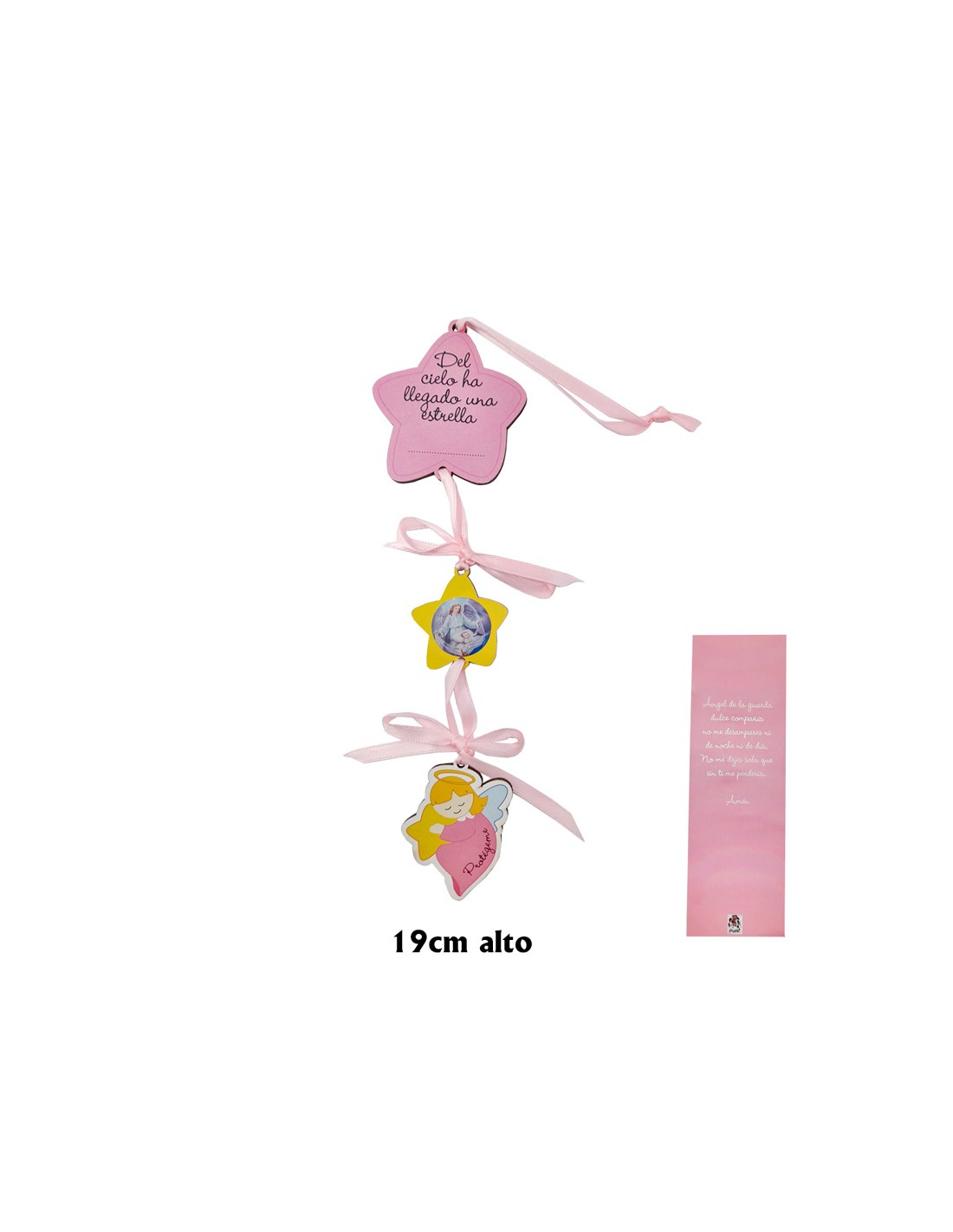 Medalla Cuna Estrella Con Texto Y Angelita Durmiendo Fondo Rosa En Blister