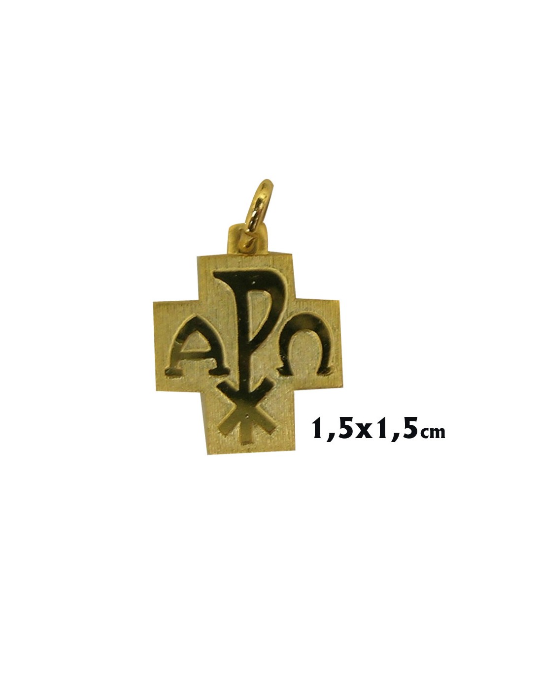 Medalla Plata Dorada Alfa Y Omega Pequeña 15X15mm