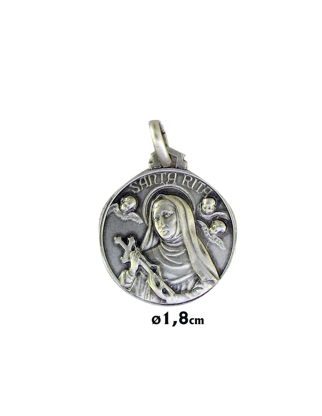 Medalla Plata 18Mm Santa Rita Busto Con Cruz En La Mano Y Angeles