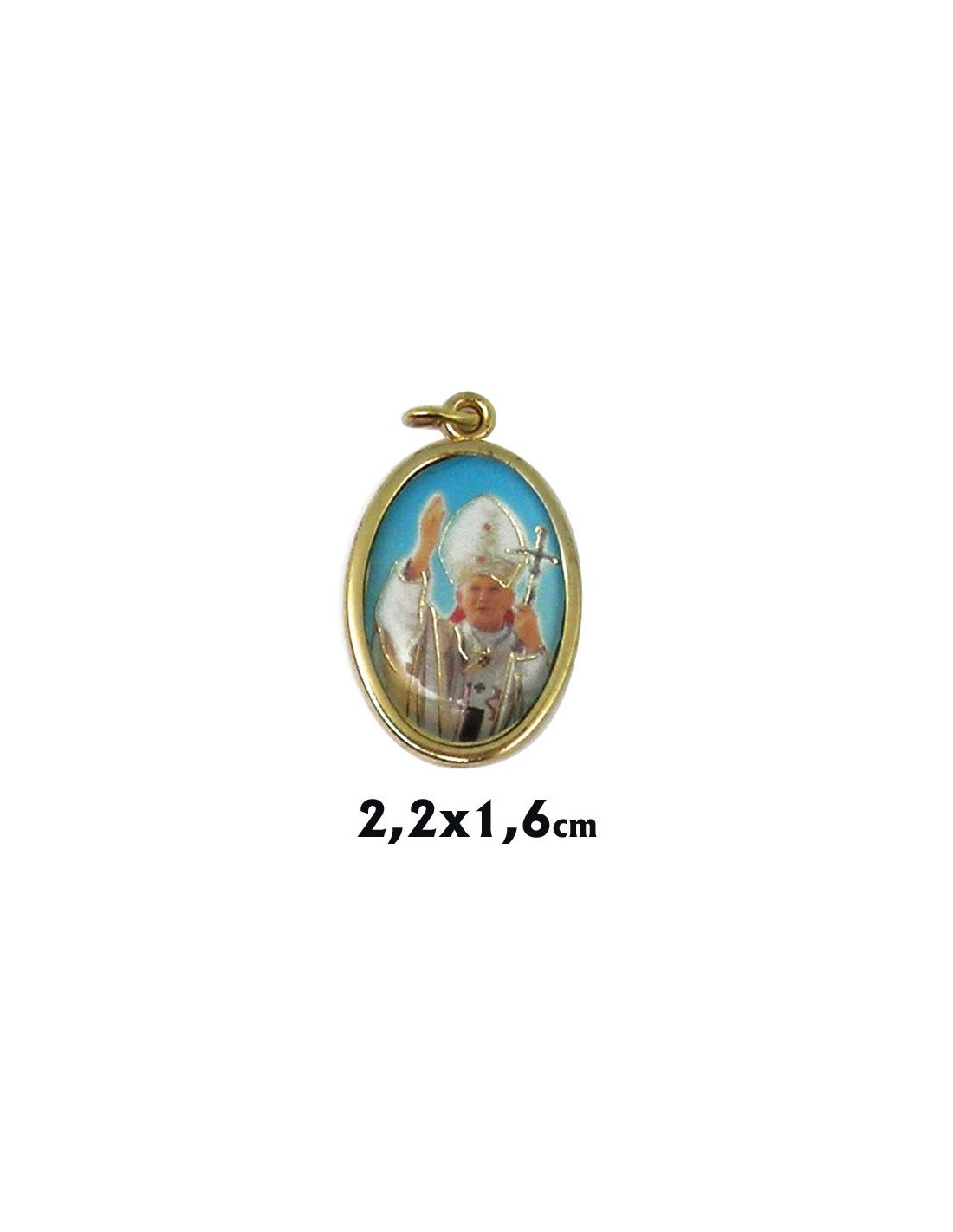 Medalla Metal Dorada Oval Foto Brillo Santo Juan Pablo Ii 22X16mm