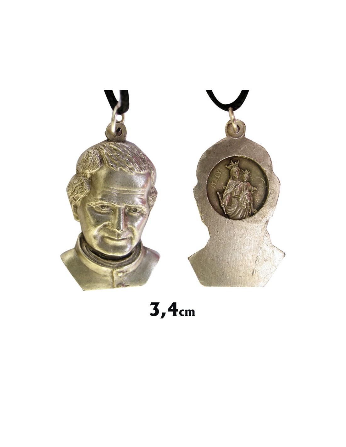Medalla Metal San Juan Bosco Con Virgen Auxiliadora Por Detras 34Mm Con Cordon Y Caja
