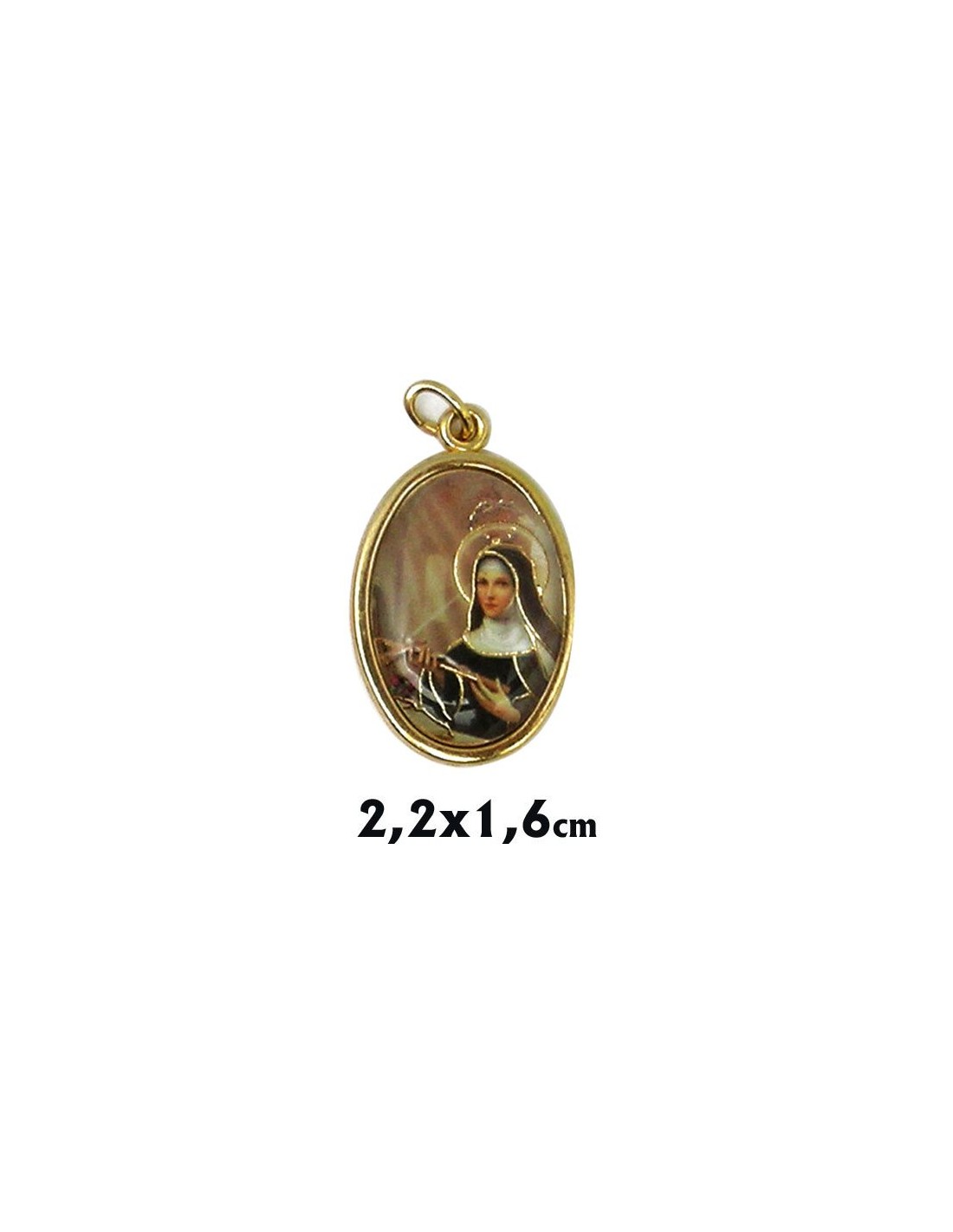 Medalla Metal Dorada Oval Foto Brillo Santa Rita 22X16mm