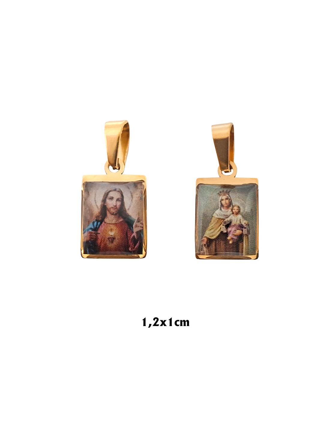 Medalla Escapulario Acero Dorado 1.2X1cm Foto 2 Lados Esmalte Duro