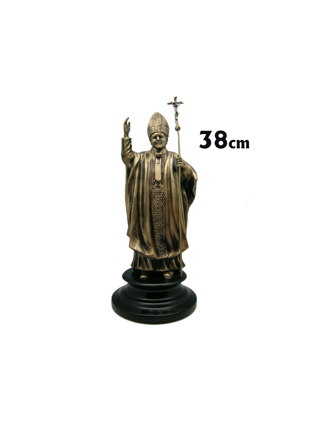 San Juan Pablo II 38cm Con Peana Acabado Bronce
