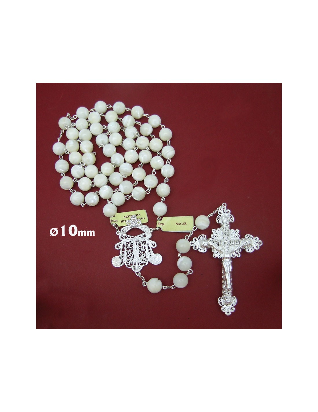 Rosario Nacar 10mm Liso Con Cruz Y...