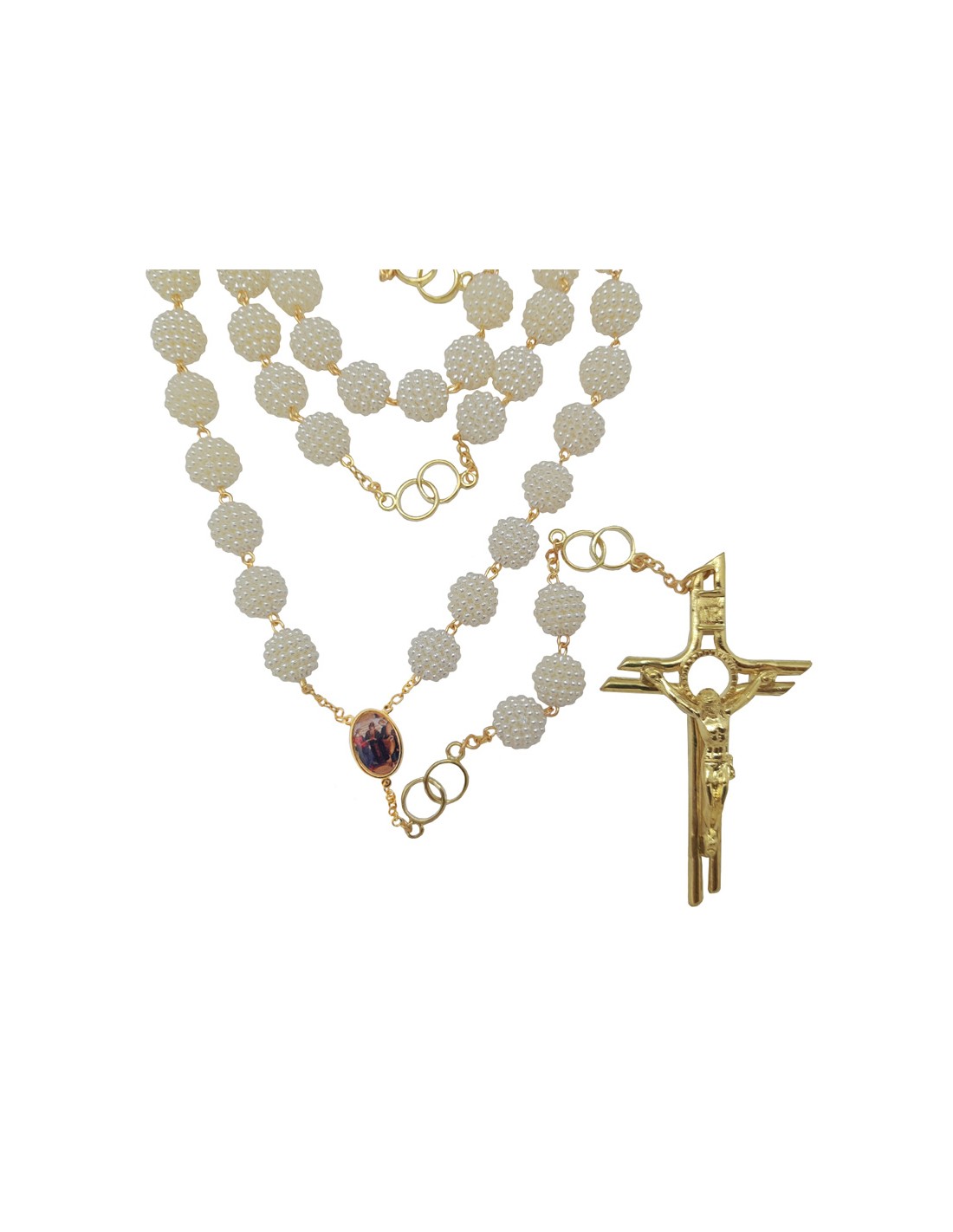 Rosario Perla Blanca 12Mm Del Matrimonio Dorado Paters Con Doble Anillo