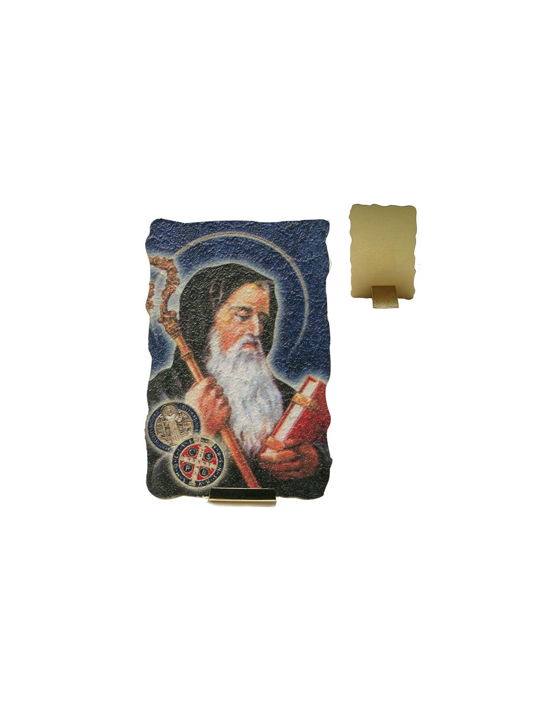 Tabla Tipo Fresco San Benito Y Medallas 8. 7X5. 5Cm Retro Dorado Pie Metal Suelto