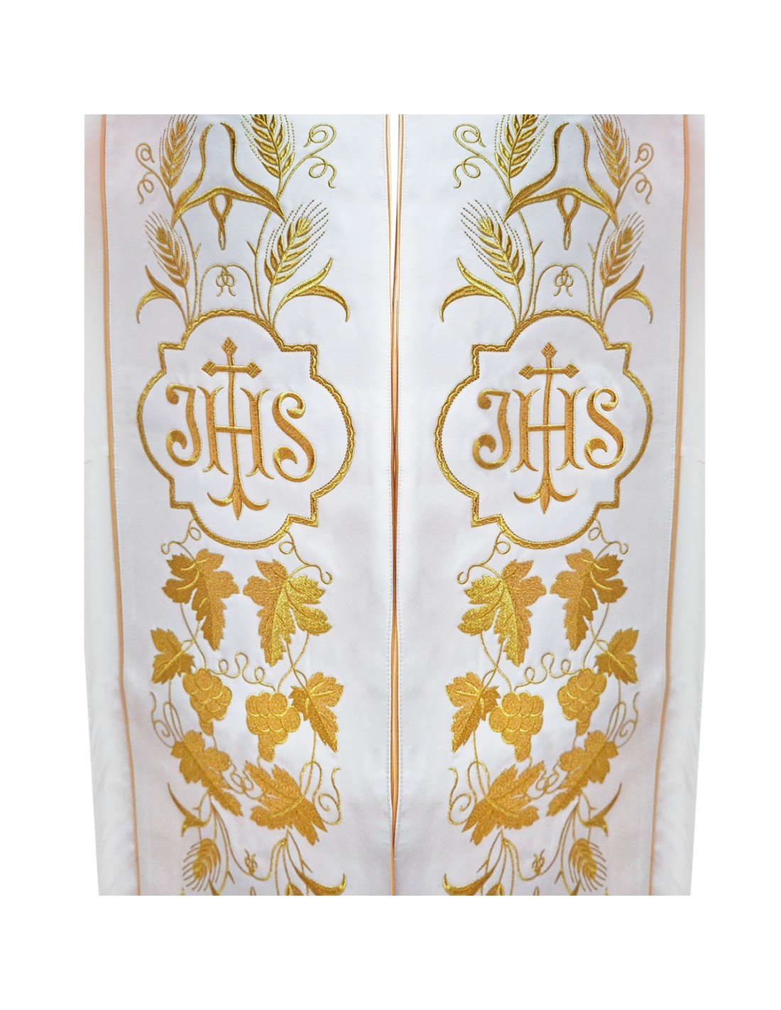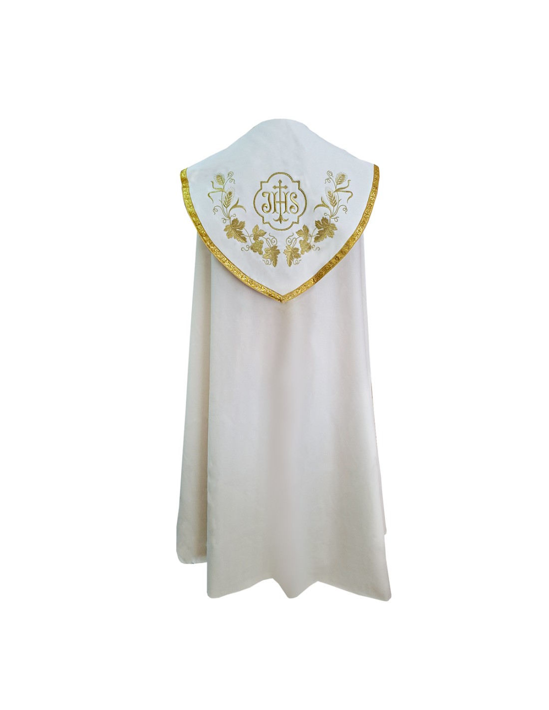 Capa Pluvial Bordada Jhs Con Cruz Larga En Roseton Espigas Y Uvas