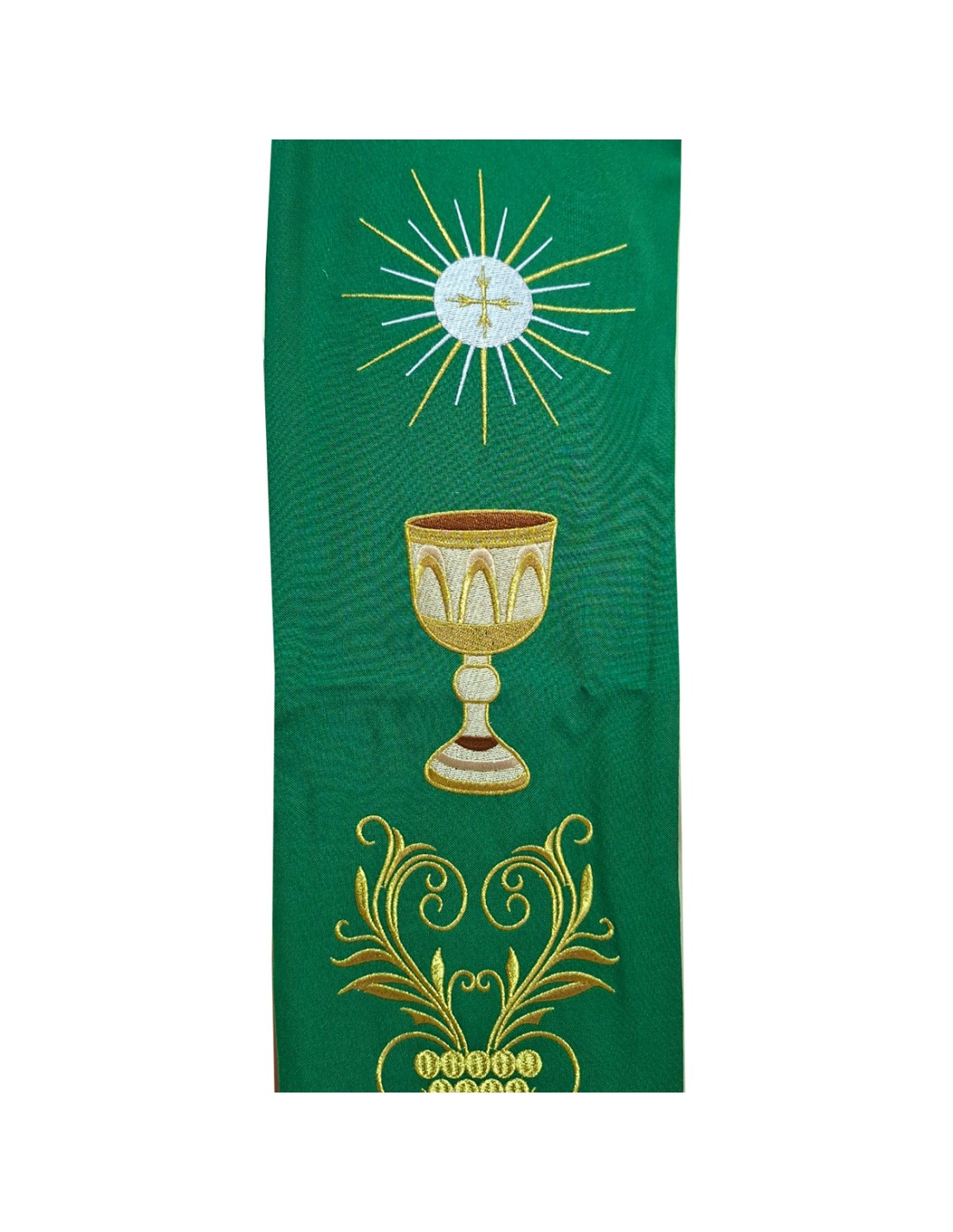 Estola Bordada Caliz Forma Con Rayos Y 6 Racimos De Uvas Con Adornos Verde