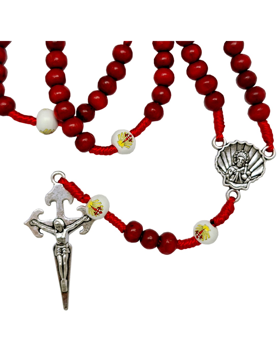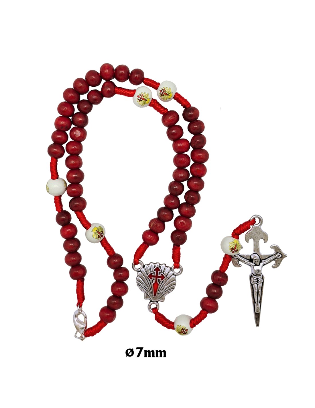 Rosario Madera Y Cuerda Santiago 6X7mm Rojo Paters Blancos Serigrafiados Mosqueton