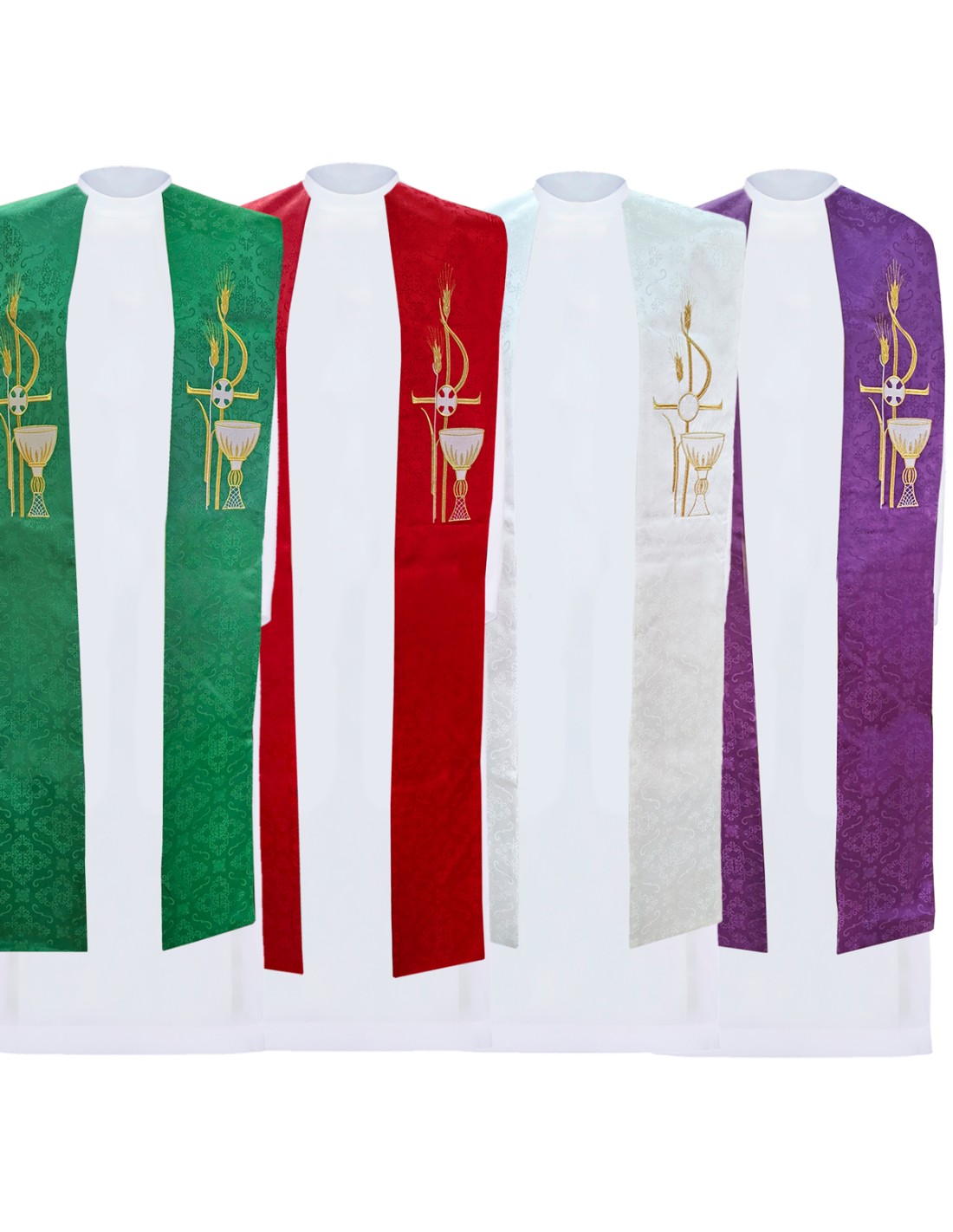Conjunto 4 Estolas Bordadas Pax Caliz Y Espigas Tela Adamascada