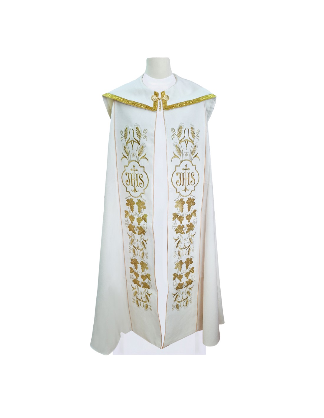 Capa Pluvial Bordada Jhs Con Cruz Larga En Roseton Espigas Y Uvas