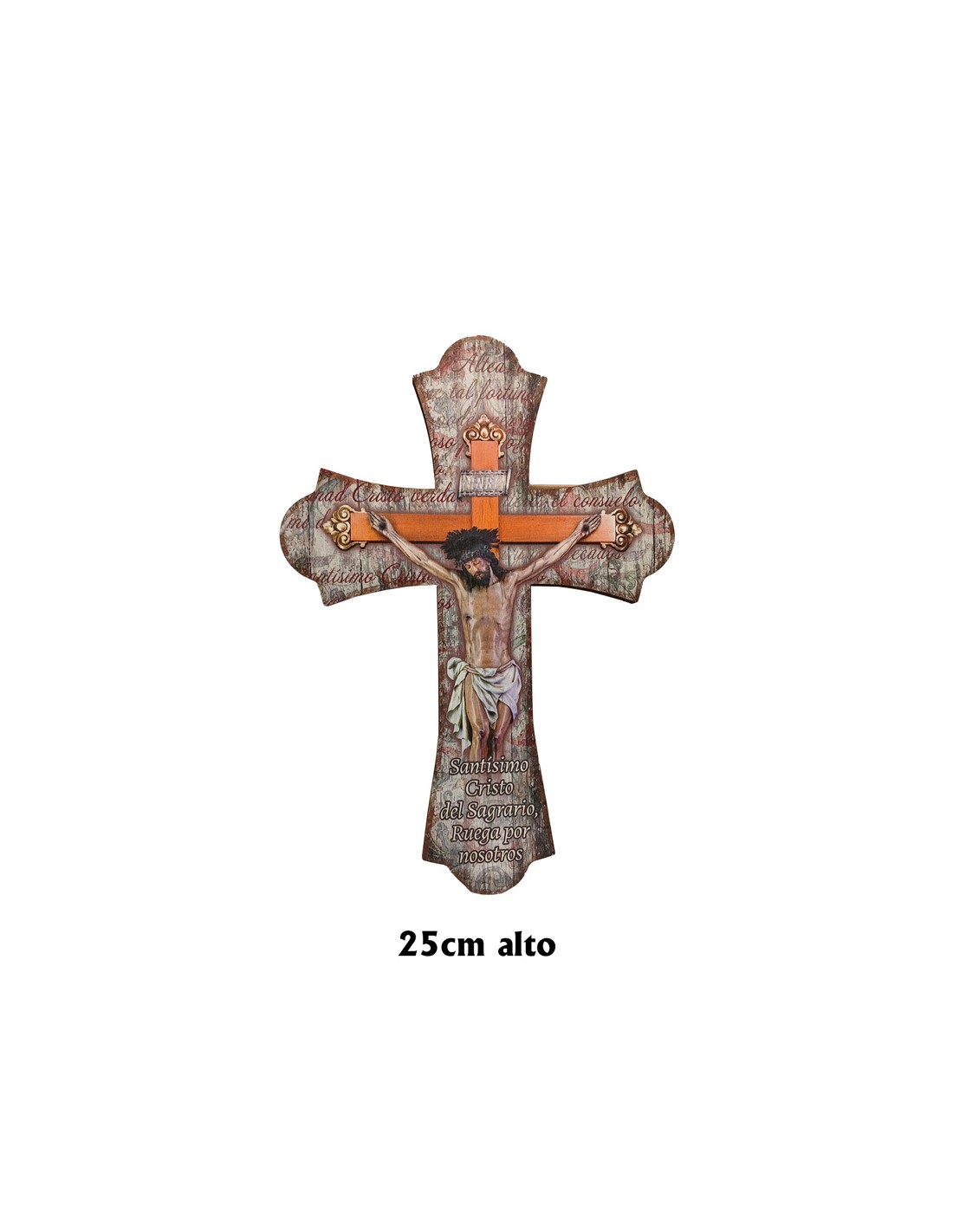 Cruz Serigrafiada Altar Cristo Del Sagrario De Altea 18X25 Para Colgar Estilo Vintage