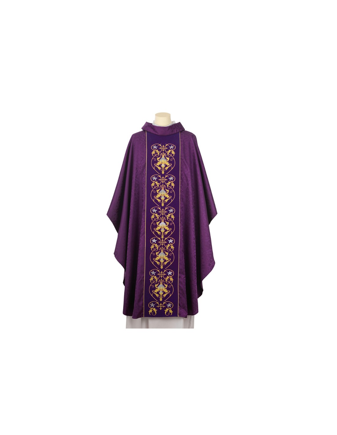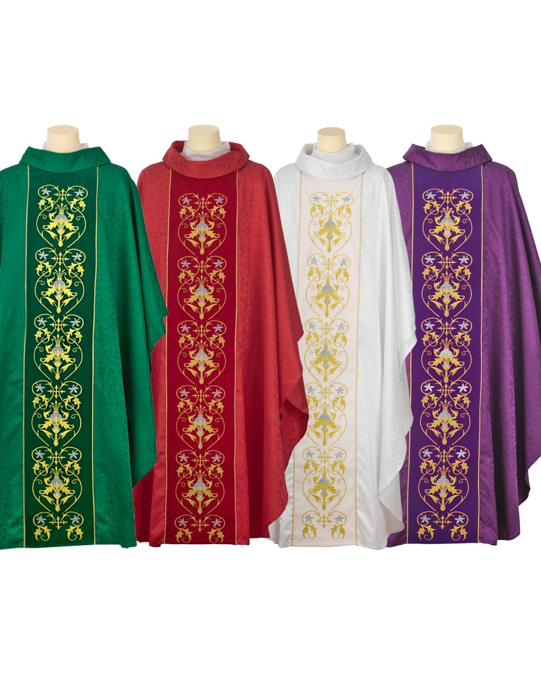 Conjunto 4 Casullas Seis Adornos Florales Tela Adamascada Sobre Galon Central