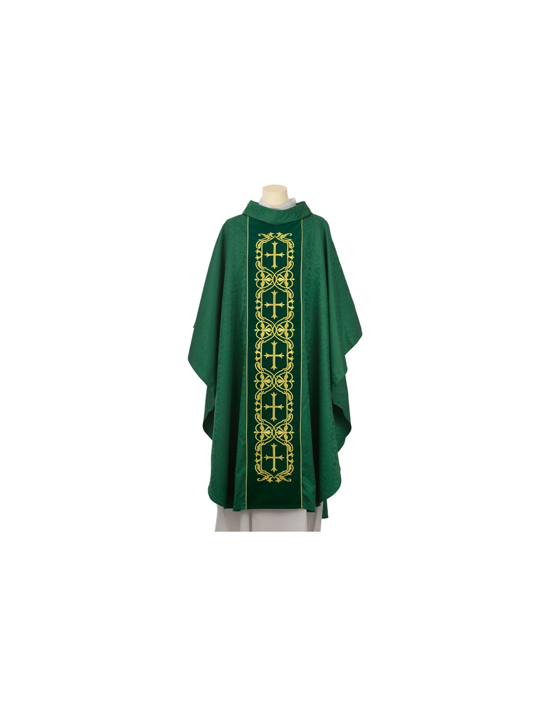 Conjunto 4 Casullas Cinco Cruces Dentro Cenafa Tela Adamascada Sobre Galon Central