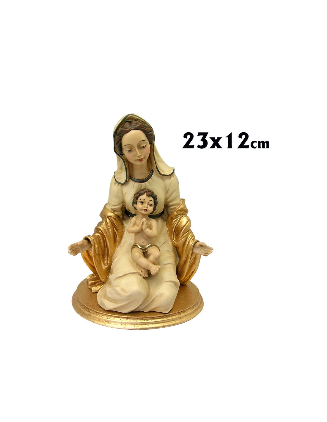 Virgen Arrodillada Con Niño Encima Res 23X12cm Acabado Oro Fin