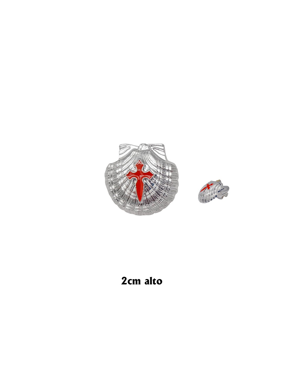 Pin Concha Niquelada Con Cruz De Santiago Esmalte Rojo 2Cm