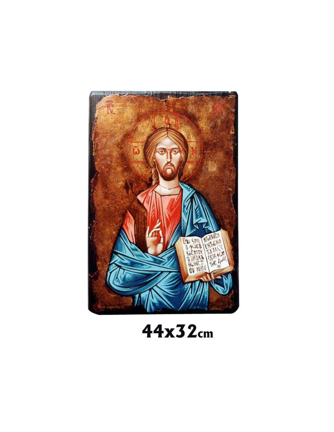 Icono Madera Pintado A Mano Acabado Antiguo 32X44cm Pantocrator Libro Abierto
