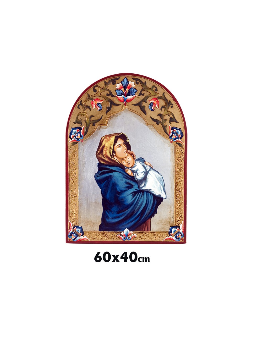 Icono Madera Pintado A Mano Cupula Decoracion Floral Virgen Gitana 60X40cm