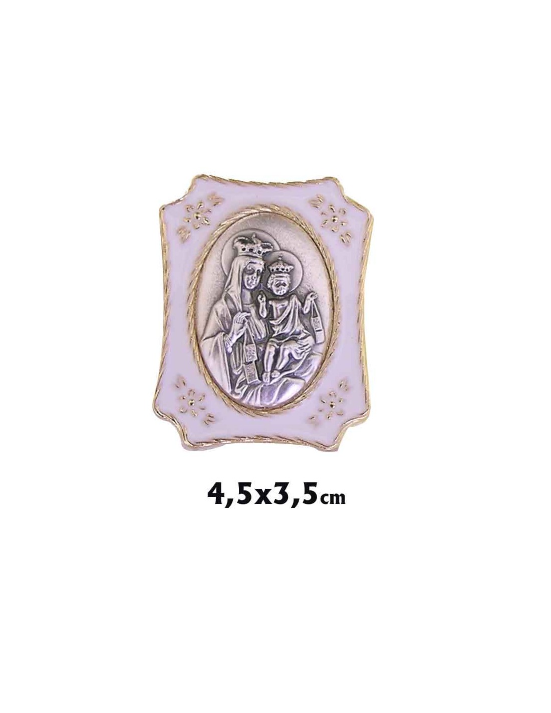 Placa Metal Dorada 4. 5X3. 5Cm Virgen Carmen En Relieve Con Esmalte Blanco