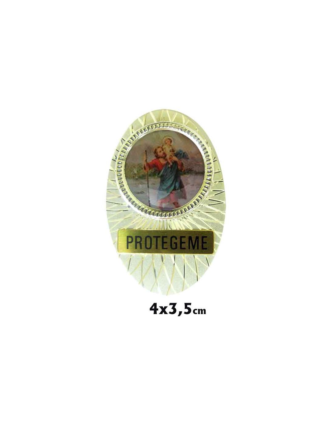 Placa Coche Oval Niquelada Con Foto Redonda 16Mm Y Protegeme Fin