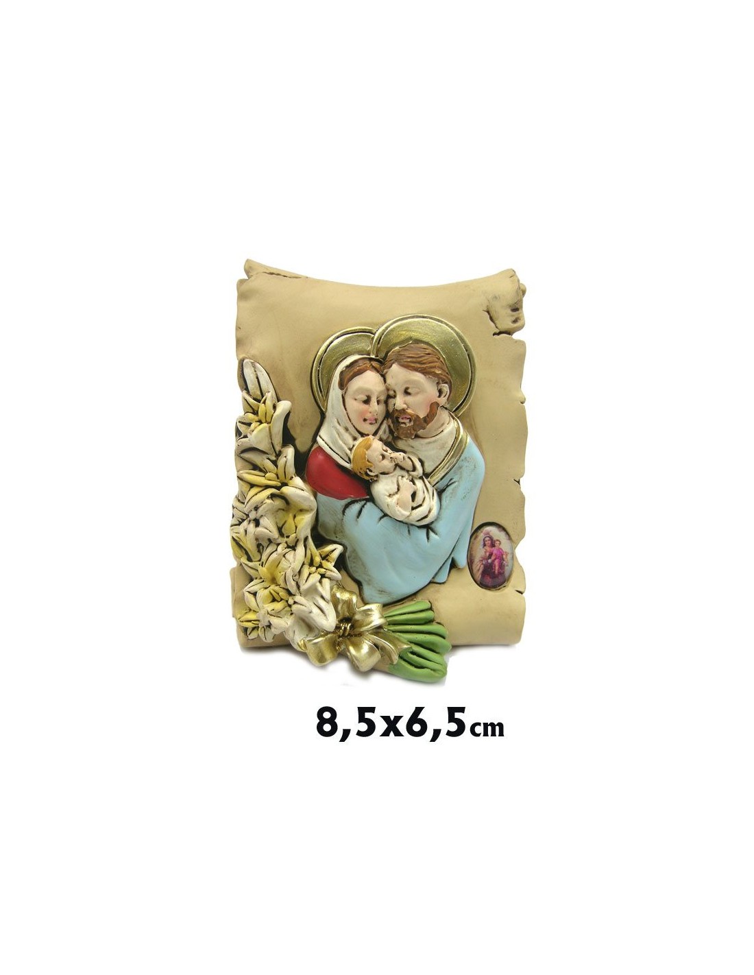Placa Pergamino Sagrada Familia Con Flores 8. 5X6. 5Cm Personalizable Res