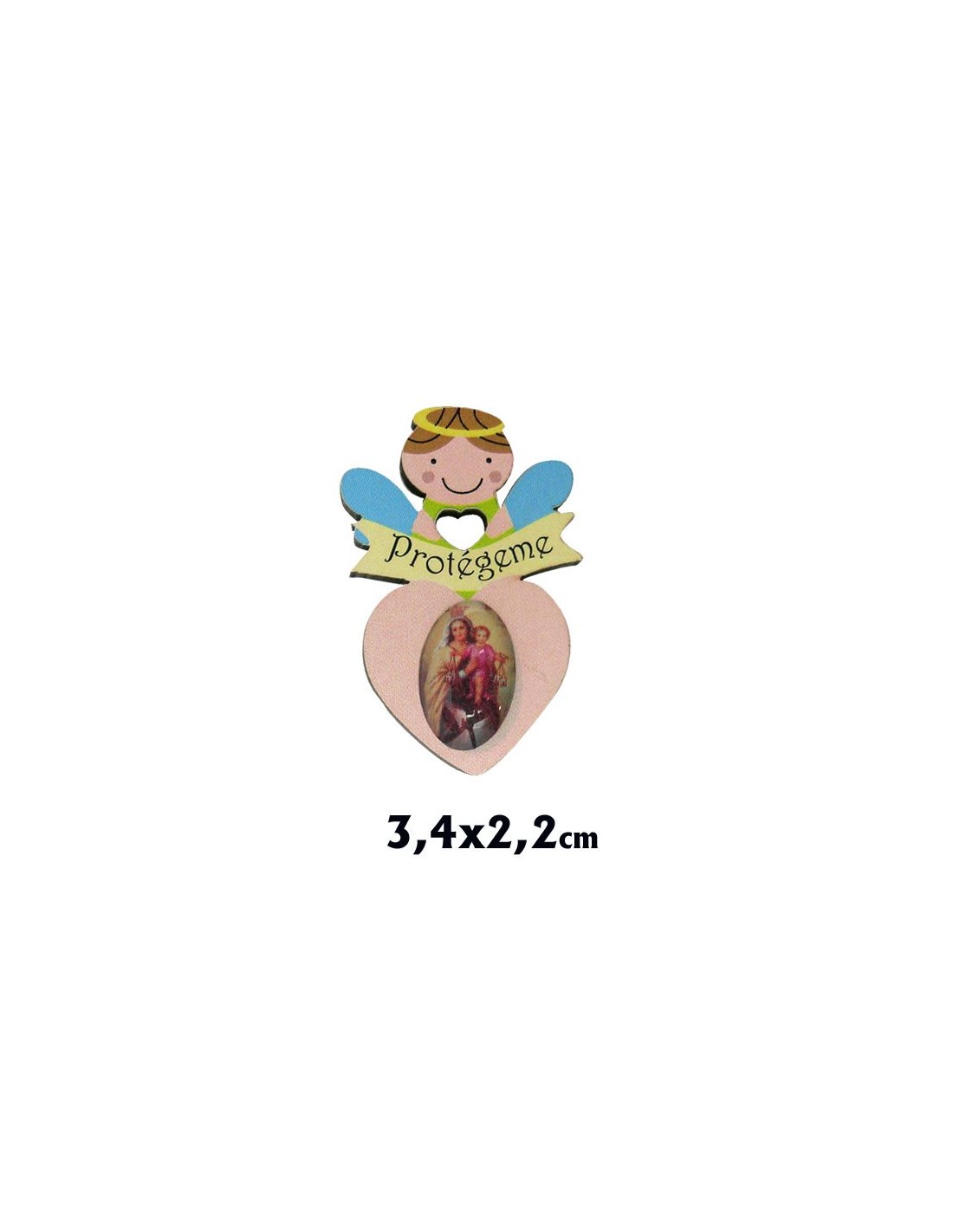 Iman Angelito Sobre Corazon Fondo Rosa 34X22mm Con Protegeme
