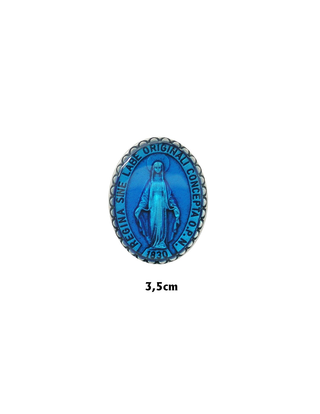 Placa Coche Virgen Milagrosa Niquel Oval 30X20 Mm Con Esmalte Azul