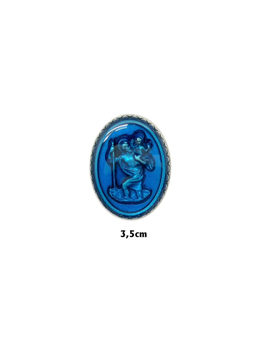 Placa Coche San Cristobal Niquel Oval 40X30 Mm Con Esmalte Azul