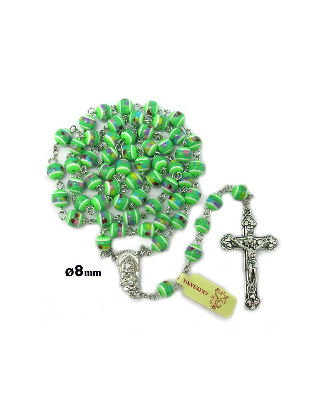 Rosario Plastico Redondo Verde 8Mm Tipo Mosaico