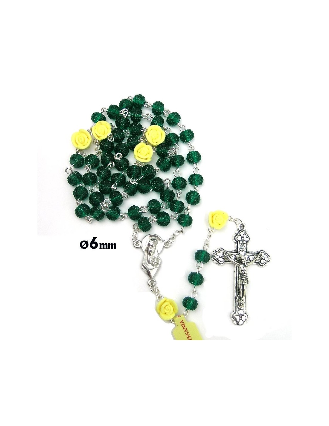 Rosario Cristal Granulado 6Mm Verde Con Rosas En Los Paters