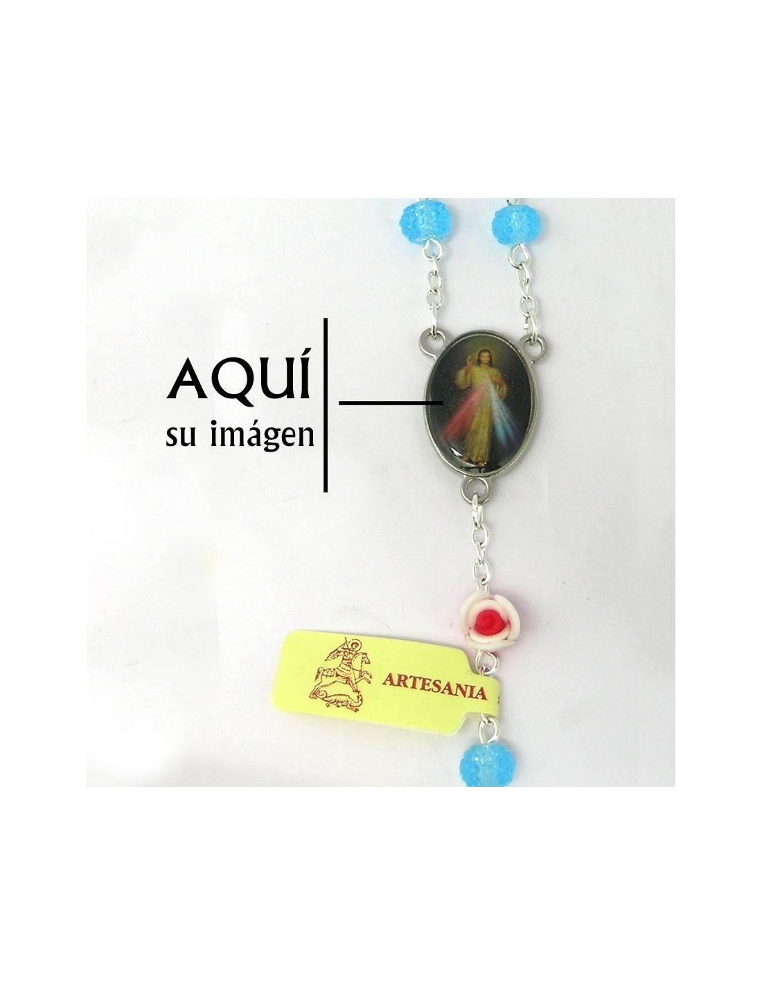Rosario Cristal Granulado 6Mm Azul Con Rosas En Los Paters