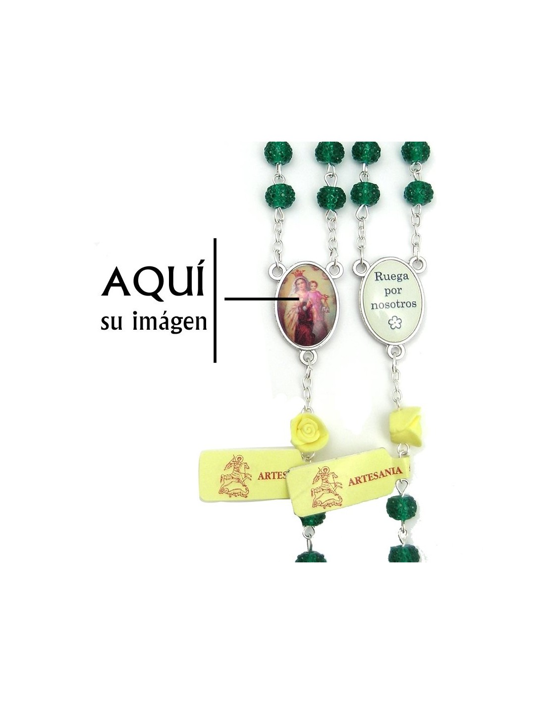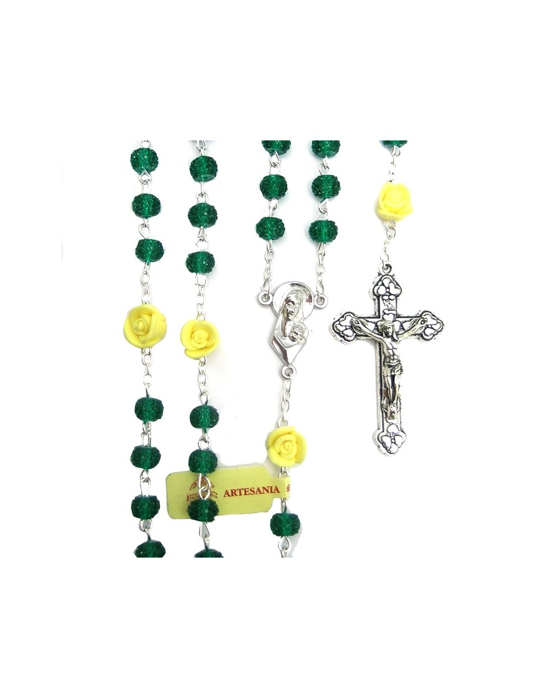 Rosario Cristal Granulado 6Mm Verde Con Rosas En Los Paters
