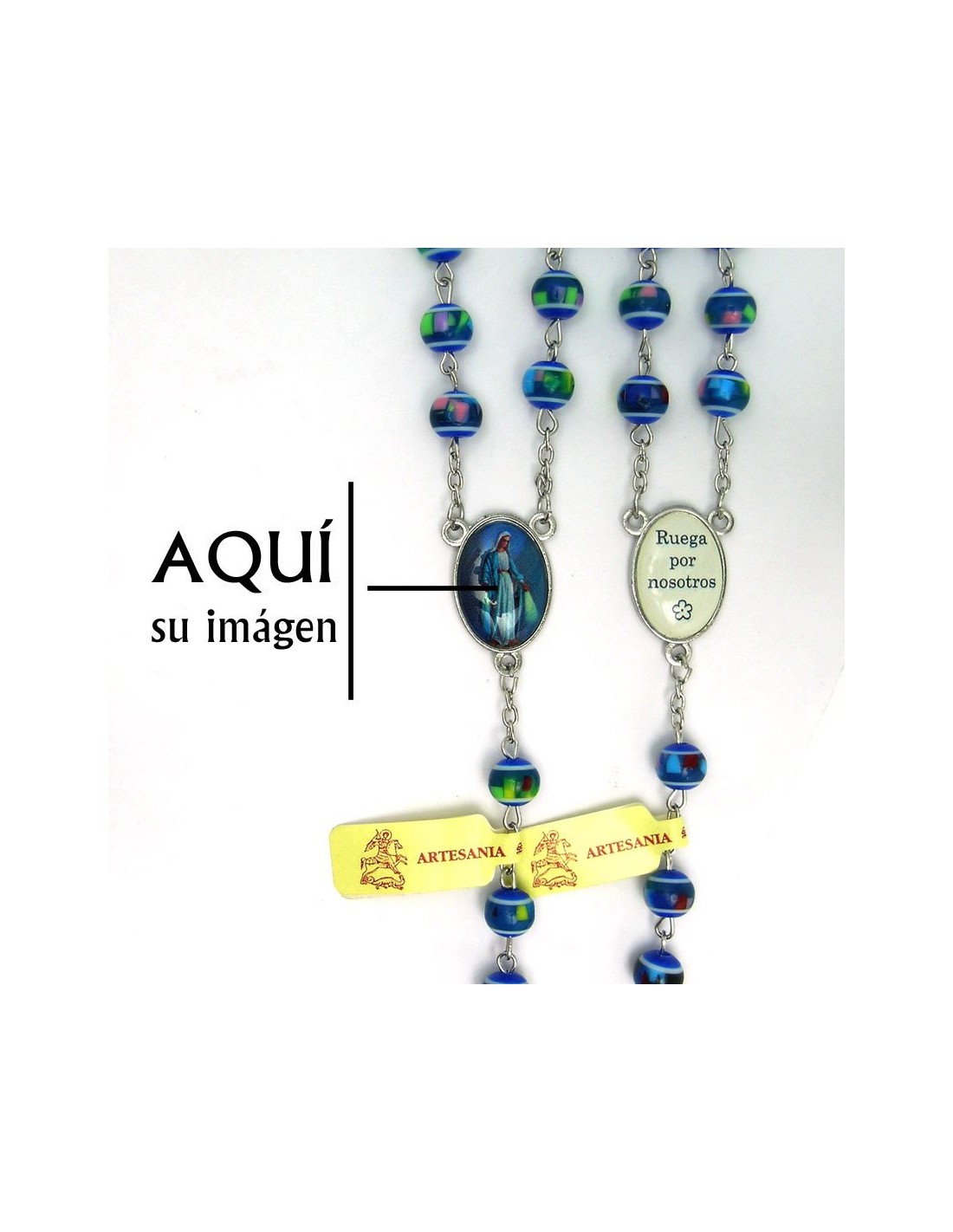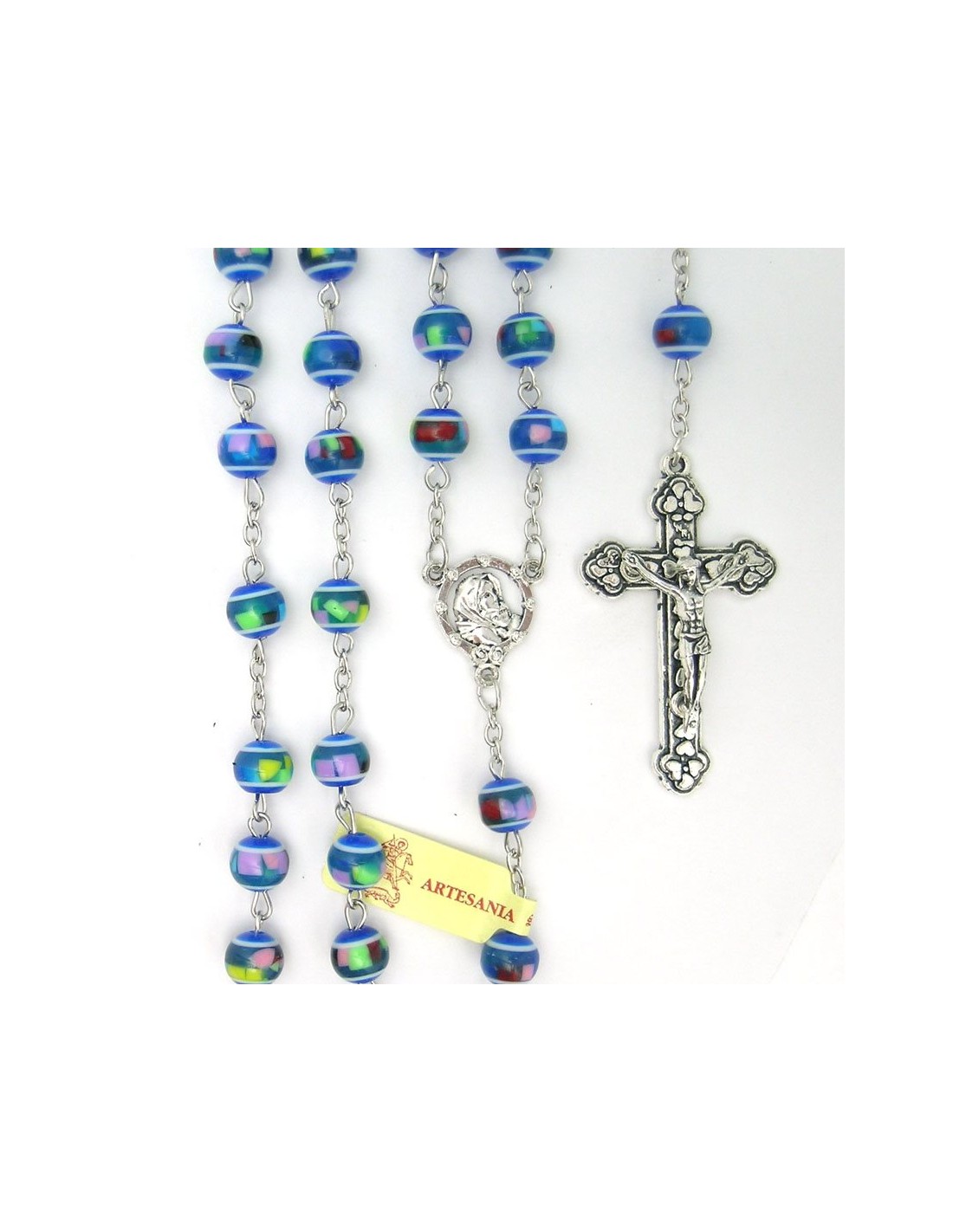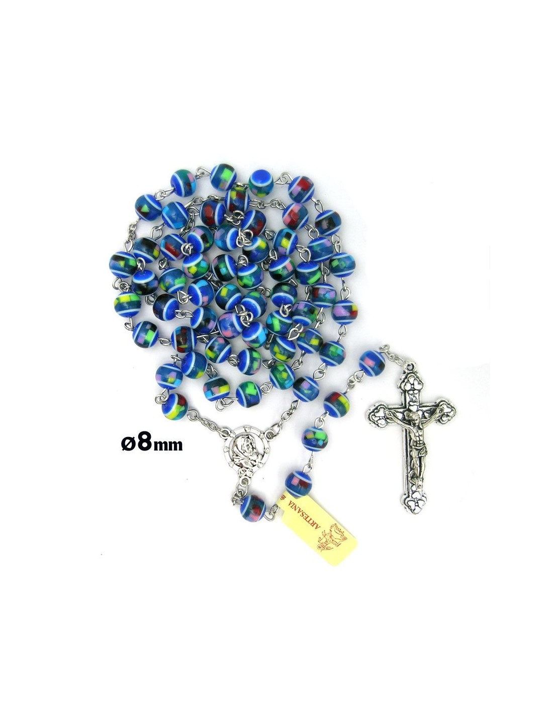 Rosario Plastico Redondo Azul 8Mm Tipo Mosaico