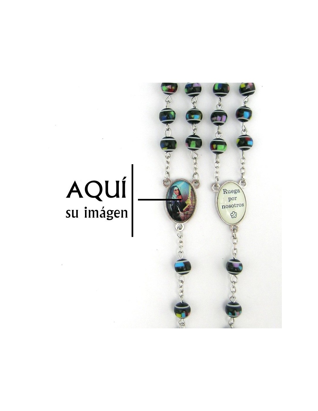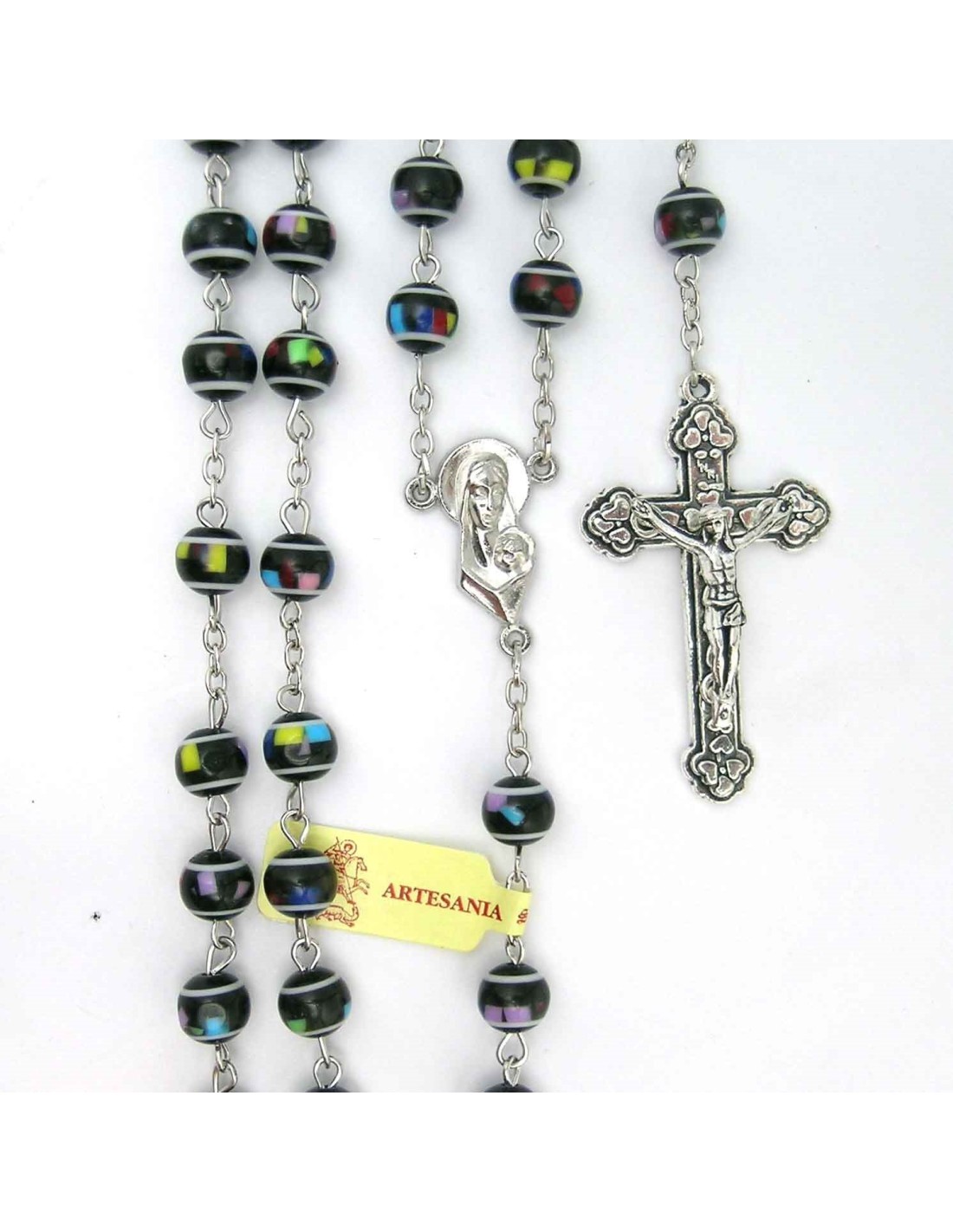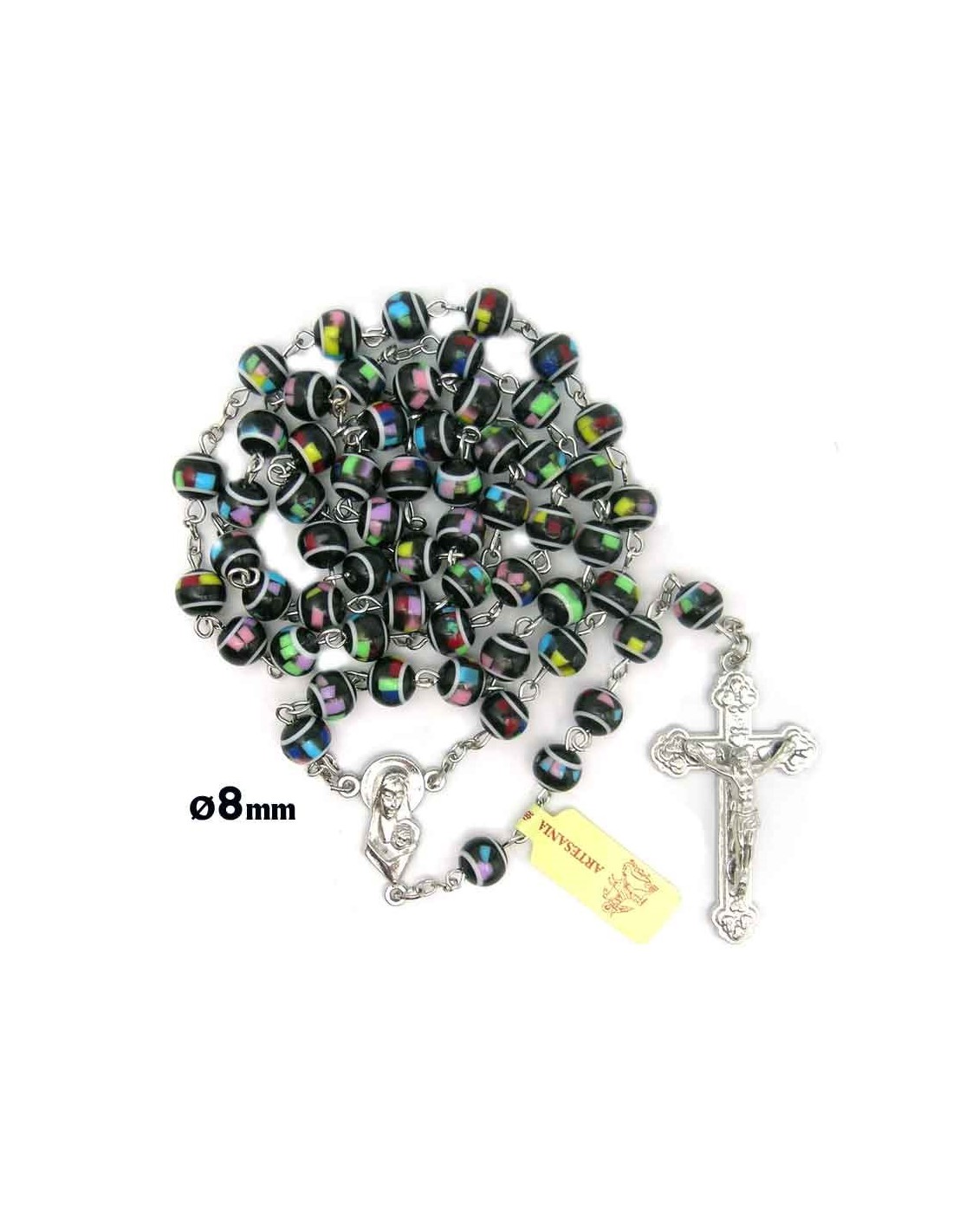 Rosario Plastico Redondo Negro 8Mm Tipo Mosaico