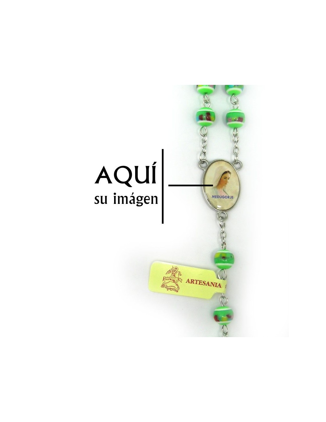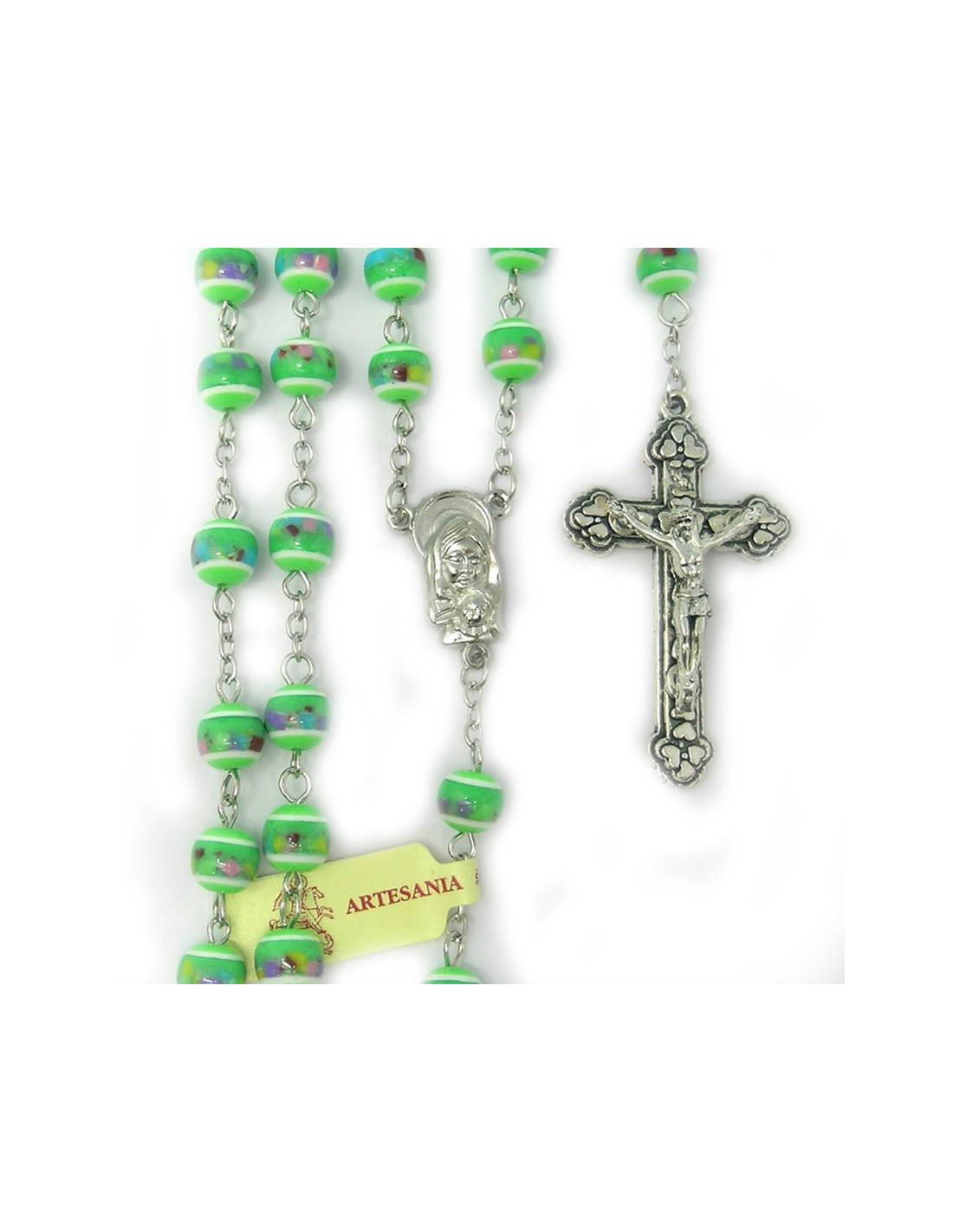 Rosario Plastico Redondo Verde 8Mm Tipo Mosaico