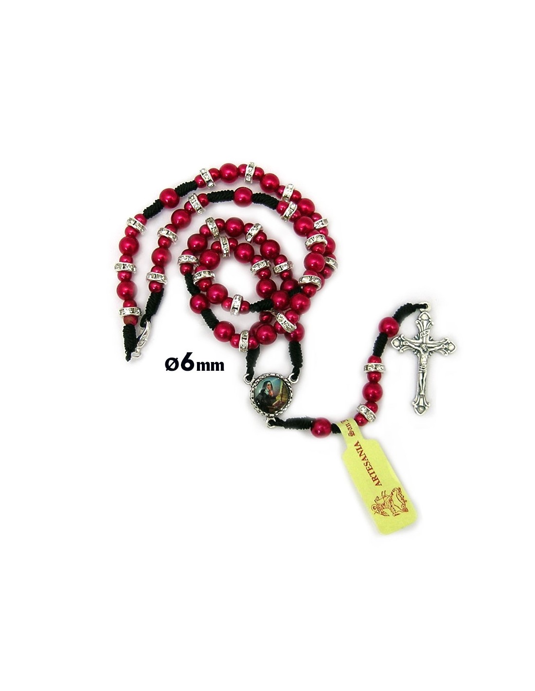 Rosario Plastico 6 Mm Rosa Liso En Cuerda Con Disco Circonitas Y Mosqueton