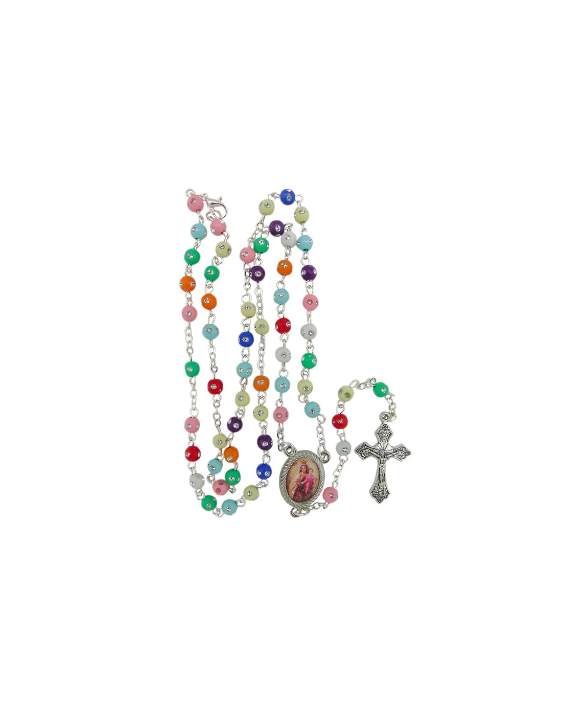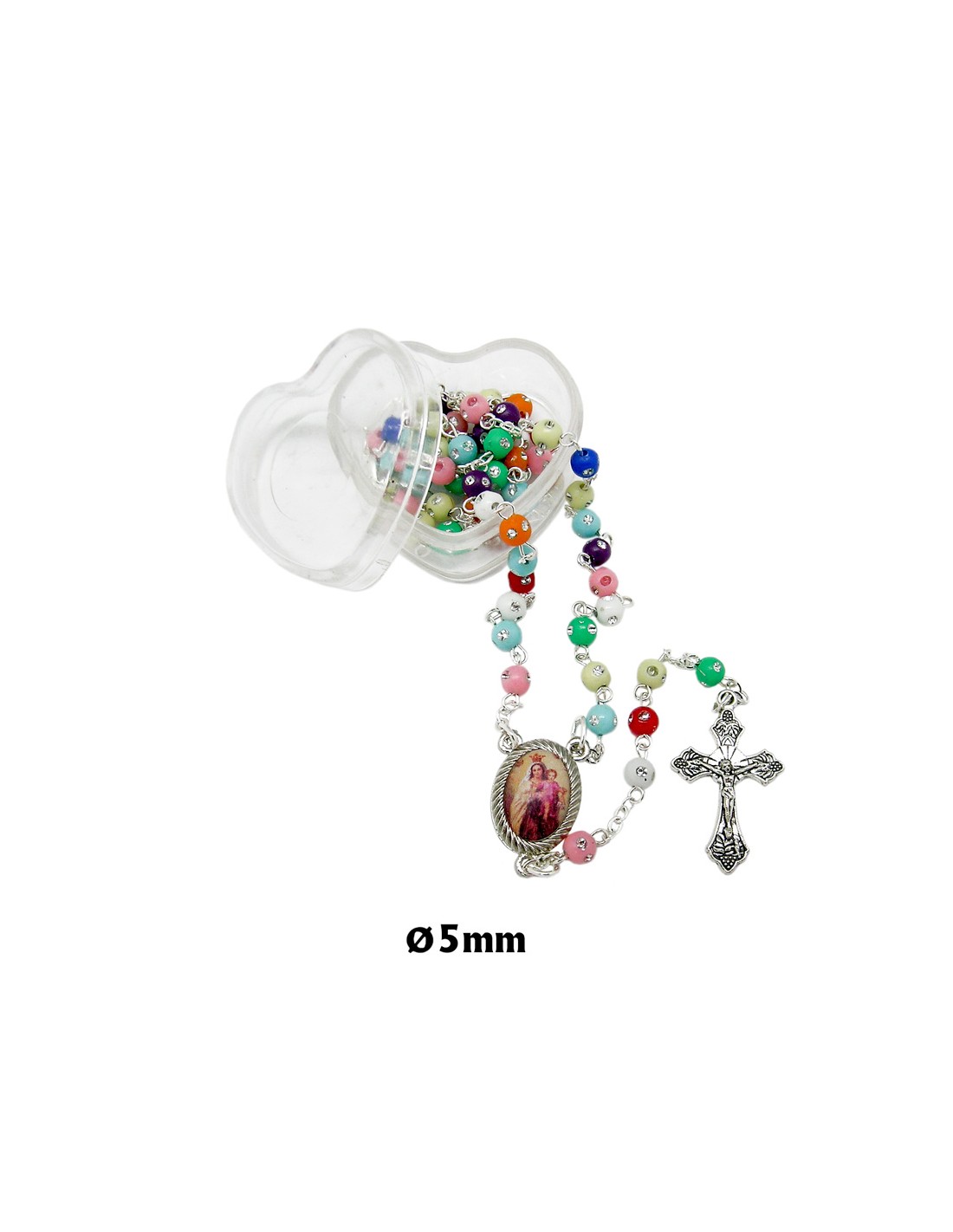 Rosario Plastico 5Mm Multicolor Con Brillante En Caja Tipo Corazon