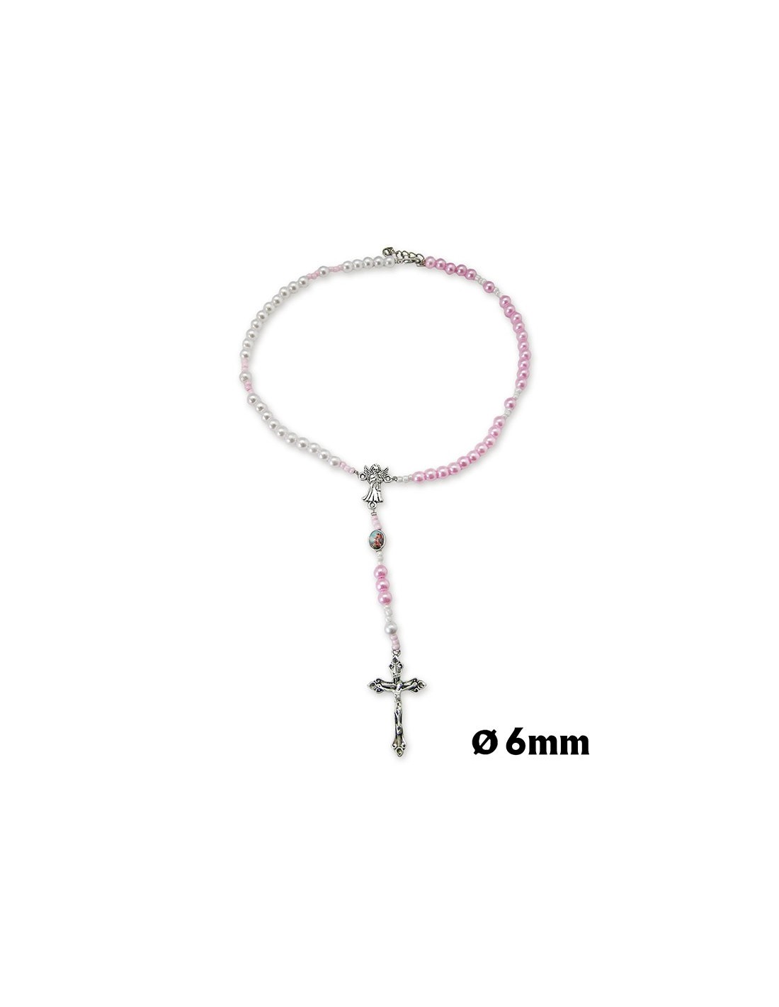 Rosario Collar Plastico Con Maria Angel Guarda Niña Dos Colores Blanco Y Rosa