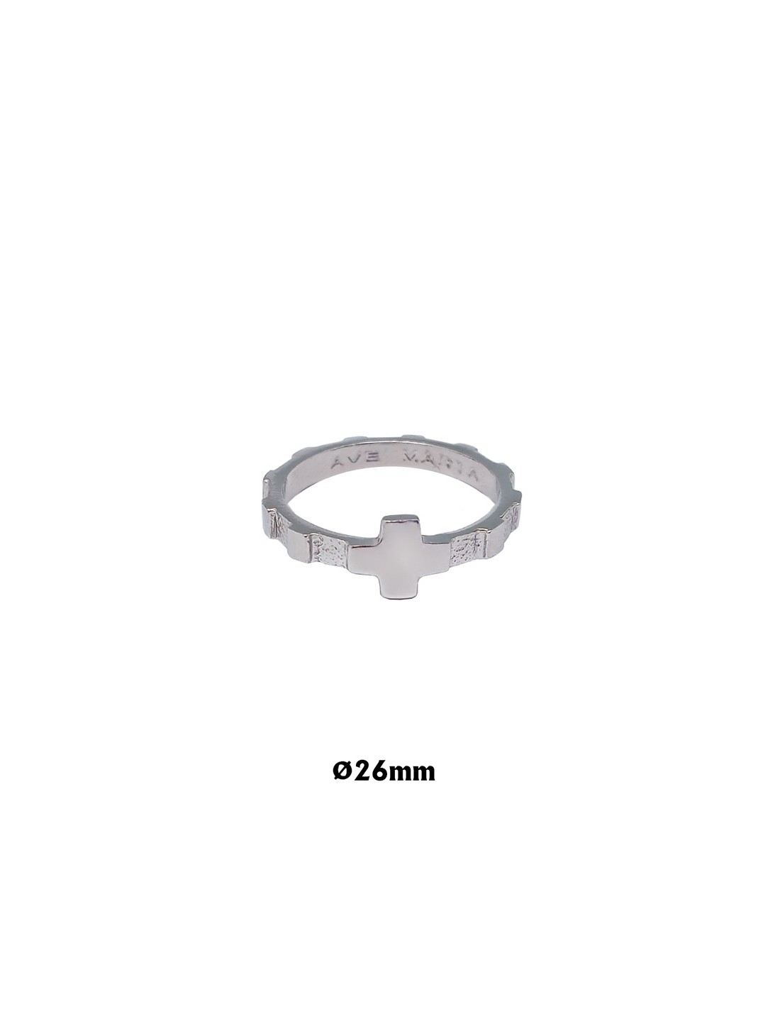 Rosario Anillo Plata Plano Grabado Ave Maria 26Mm Con Caja