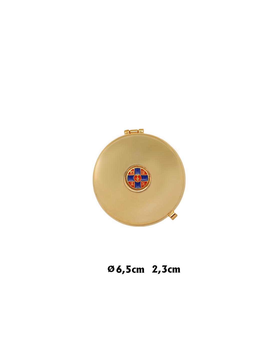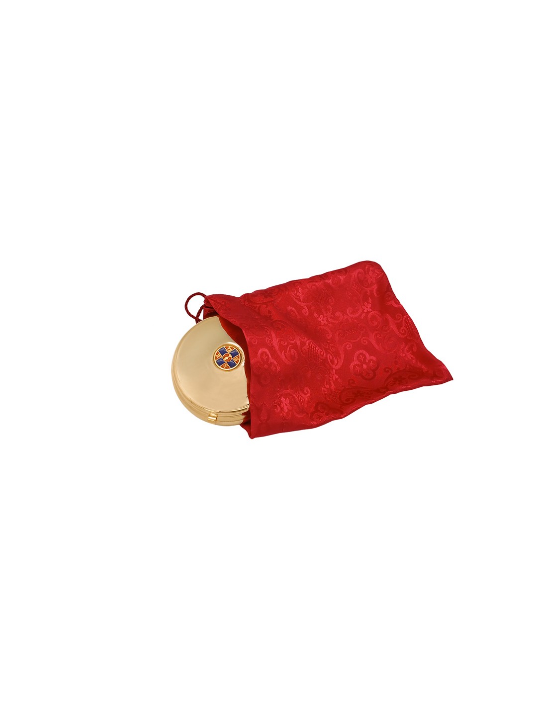 Portaviatico Dorado Con Boton Esmalte Superior Cruz Azul Y Caliz Rojo Con Funda
