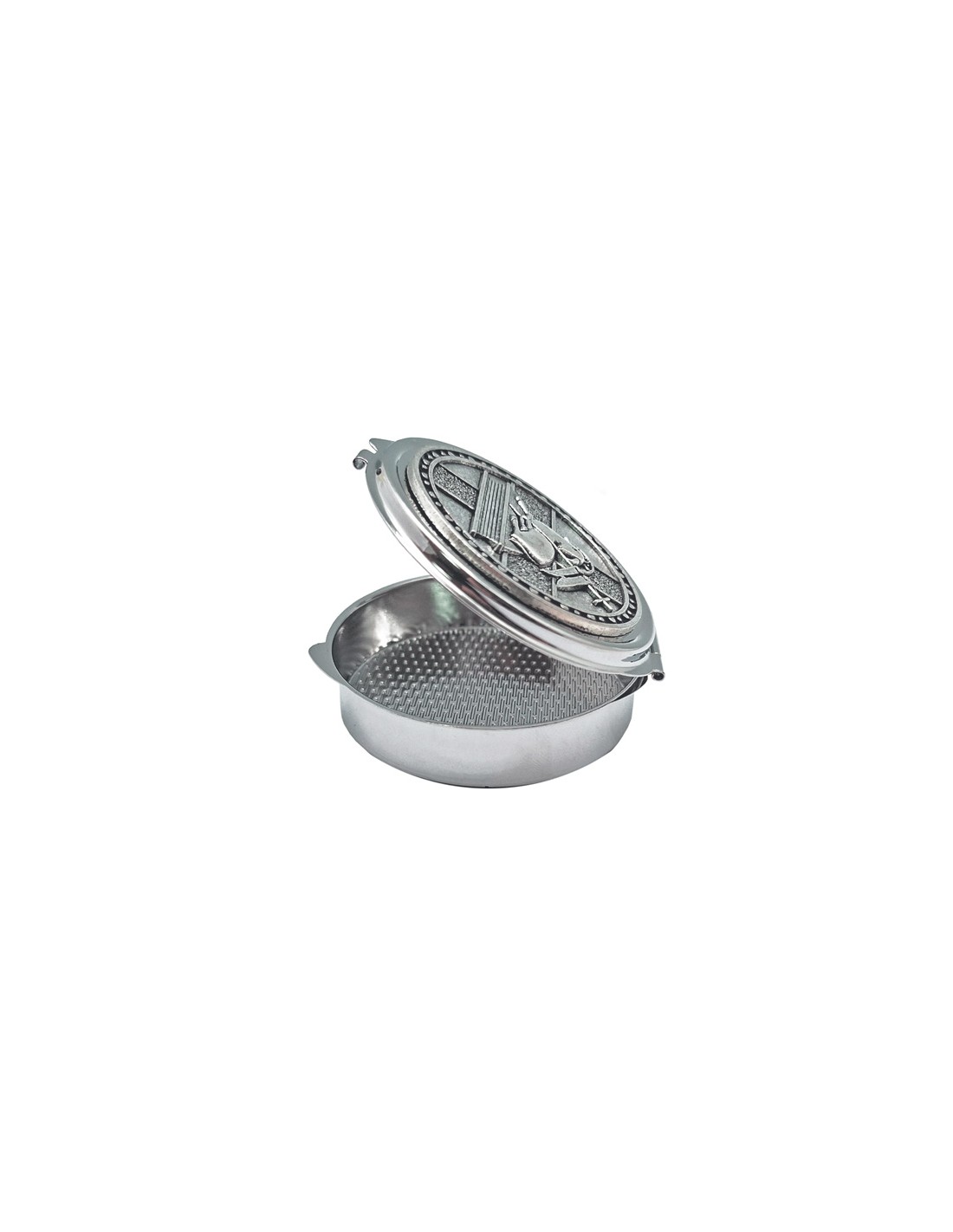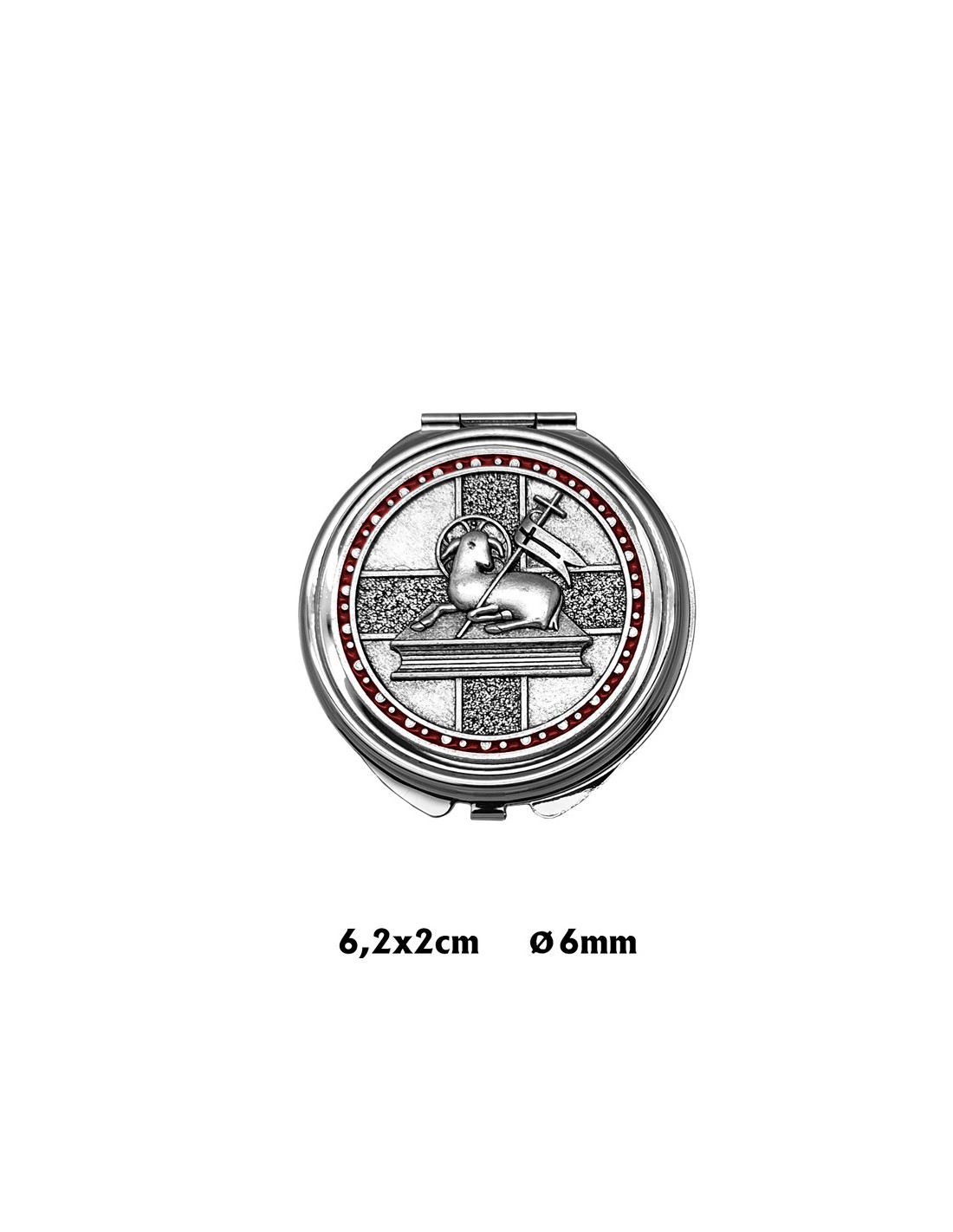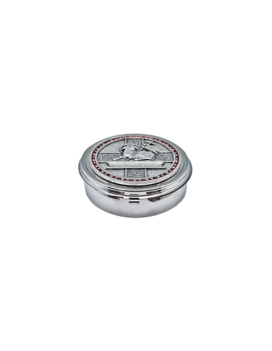 Portaviatico Caja Niquel Rodio Placa Relieve Plateada Cordero En Circulo Esmalte Rojo 6.2X2 Cm