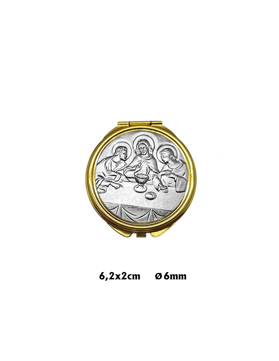 Portaviatico Caja Dorada Placa Superior Relieve Plateada Ultima Cena 6.2X2 Cm