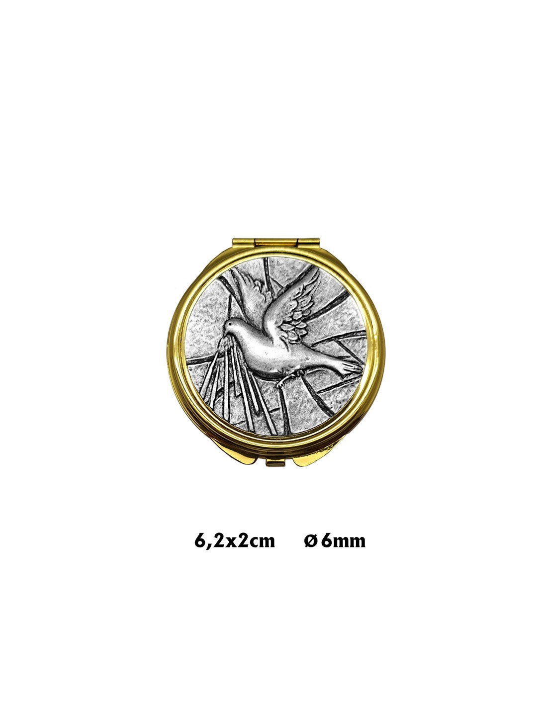 Portaviatico Caja Dorada Placa Superior Relieve Plateada Paloma 6.2X2 Cm