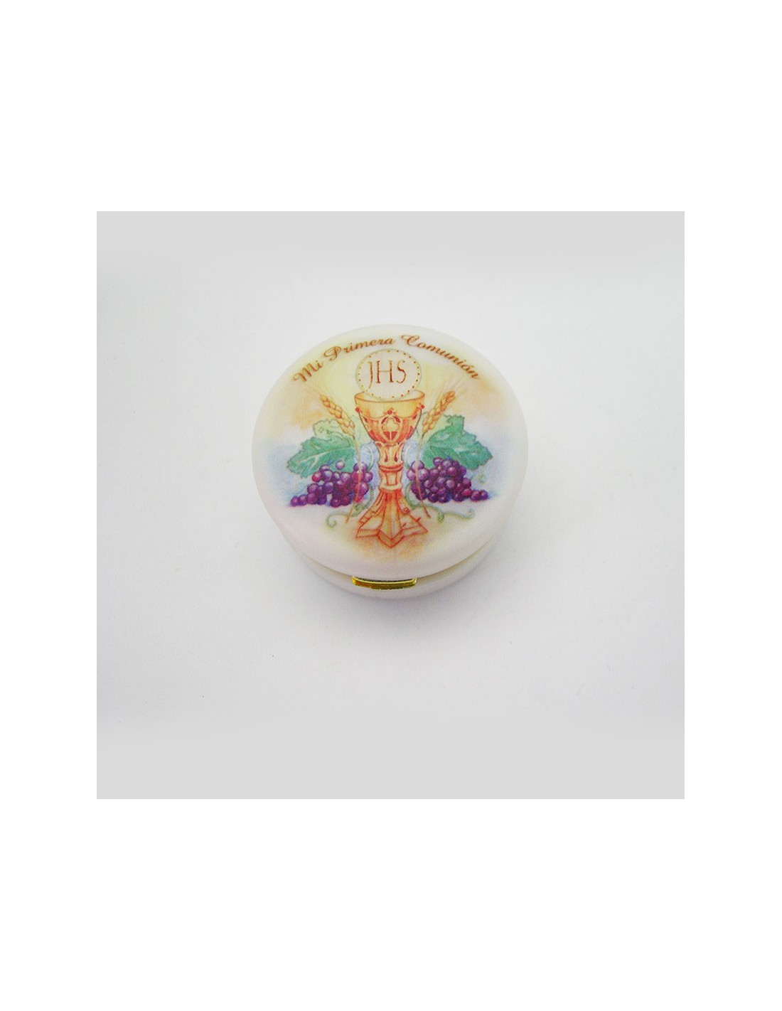Caja Redonda Con Foto Primera Comunion Acabado Nacar