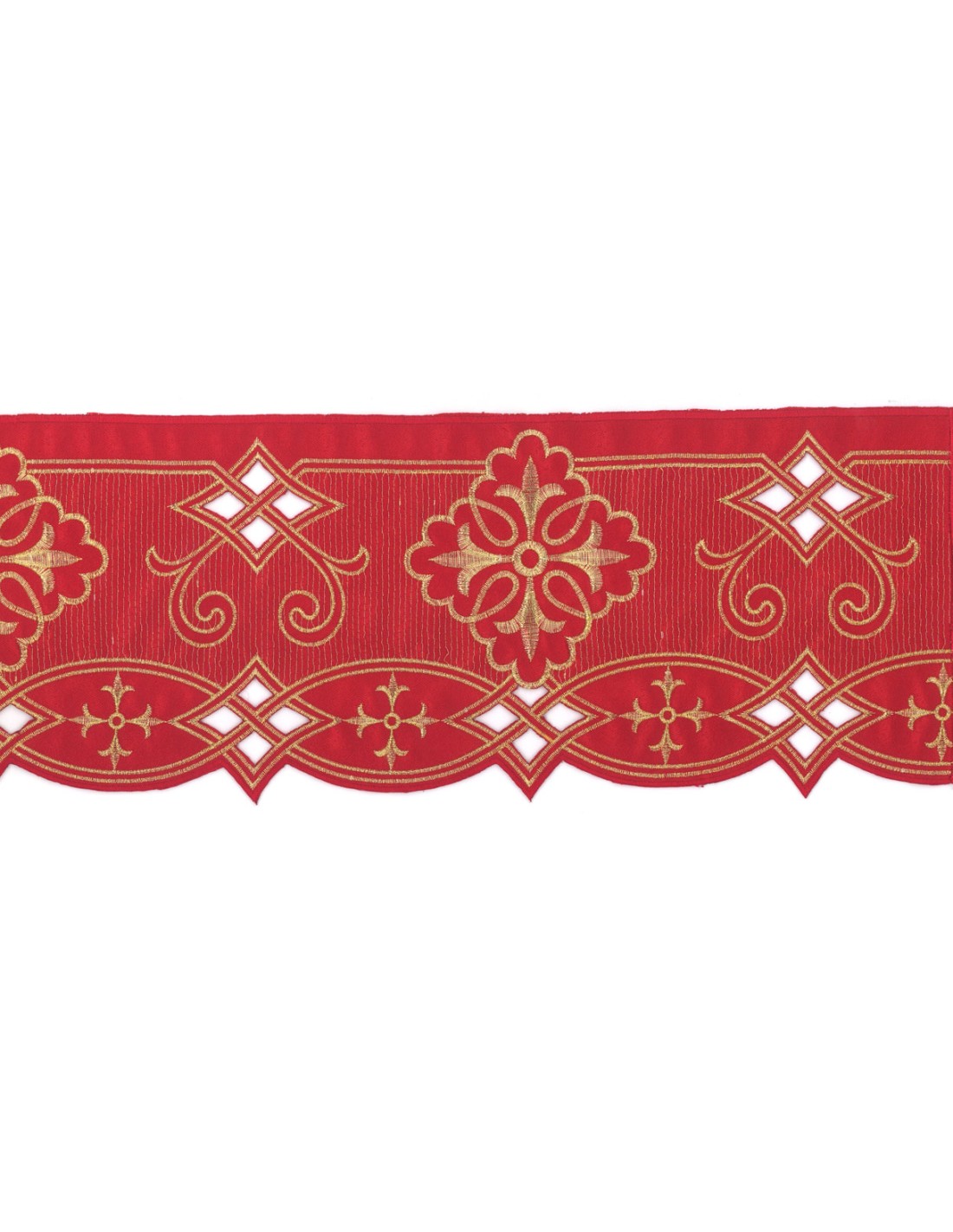 Puntilla Para Frontal De Altar 9Cm X 1 Metro Ref30 Roja Cruces Doradas Y Rombos (7 Metros)